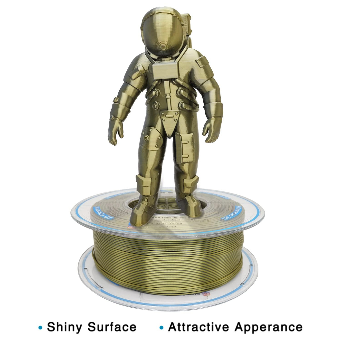 Q: What advantages does the silk finish provide for 3D prints?A: The silk finish of the YOUSU filament offers a pearlescent and glossy surface on finished prints without the need for post-polishing. This unique texture enhances the aesthetic appeal of your 3D models.