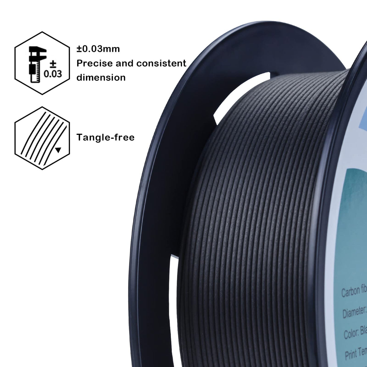 Q: What are the key benefits of using ZIRO Carbon Fiber PLA filament?A: ZIRO Carbon Fiber PLA filament contains 15% carbon fiber, providing enhanced rigidity and strength compared to standard PLA. This results in improved print quality and fewer issues like warping and clogging, making it an excellent choice for 3D printing enthusiasts.