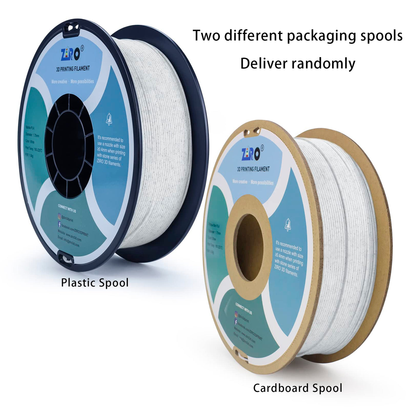 Q: What type of spool does the ZIRO PLA Marble Filament come in?A: The ZIRO PLA Marble Filament is delivered with either a plastic spool or a cardboard spool, but please note that only plastic spools will be restocked in the future due to compatibility issues.
