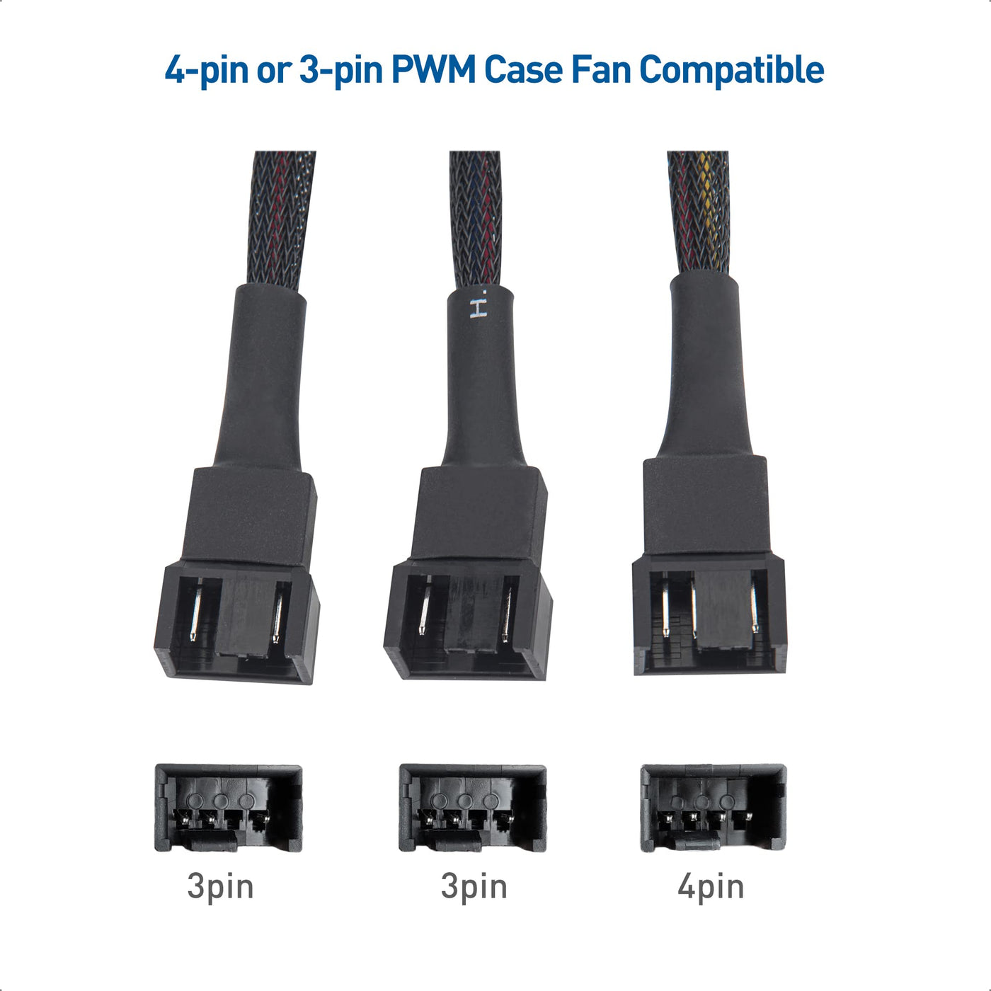 PWM Fan Case Coverage The Cable Matters PWM 3-Fan Splitter Cable provides a quick and inexpensive solution for adding case fans in a computer case. Eliminate the need for a separate fan control by using the fan port on a motherboard. Cable pin configuration allows fan speed regulation with the 4th RPM sensing pin connected only to the main fan.