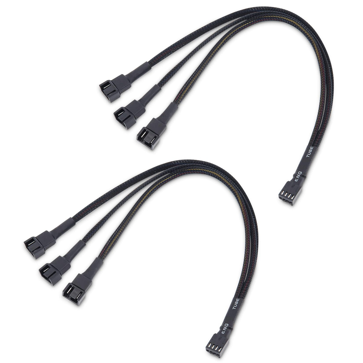 Cable Matters 2 Pack 3 Way 4 Pin PWM Fan Splitter Cable 12 Inches, PC Fan Splitter 1 to 3 Converter, PC Fan Extension Cable