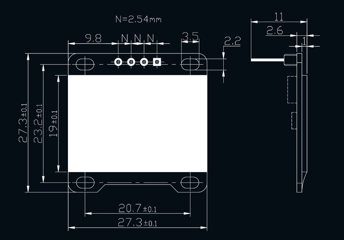 Size: 0.96 Resolution: 128X64 Color: Blue Viewing Angle: Greater Than 160 Degrees Supported Platforms: For Arduino, 51 Series, Msp430 Series, Stim32 / 2, Scr Chips Low Power Consumption: 0.04W During Normal Operation Support Wide Voltage: 3.3V-5V Dc Working Temperature: -30-80 Degrees Volume: 27Mm * 27Mm * 4.1Mm Driver Ic: Ssd1306 Communication: Iic, Only Two I / O Ports No Font: The Software Takes Word Modulo Backlight: Oled Self Light, No Backlight Interface: Vcc: 3.3-5V Gnd: Ground Scl: Serial Clock Sda: Serial Data Package Included: 2 X 0.96 Iic Oled Moudle