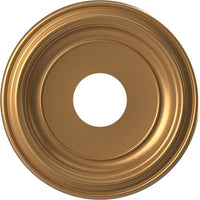Q: What is the size of the Ekena Millwork CMP13TRBGL ceiling medallion?A: The Ekena Millwork CMP13TRBGL ceiling medallion has an outer diameter of 13 inches, an inner diameter of 3.5 inches, and a projection of 1.25 inches.