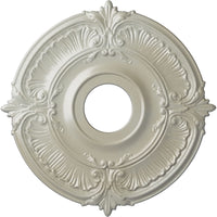 Q: What are the dimensions of the Ekena Millwork Attica Ceiling Medallion?A: The Ekena Millwork Attica Ceiling Medallion has an outside diameter of 18 inches, an inside diameter of 4 inches, and a projection of 5/8 inches. It is designed to fit canopies up to 5 inches.