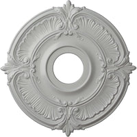 Q: What are the dimensions of the Ekena Millwork CM18ATFRF Attica Ceiling Medallion?A: The Ekena Millwork CM18ATFRF Attica Ceiling Medallion has an outside diameter of 18 inches, an inside diameter of 4 inches, a projection of 5/8 inches, and fits canopies up to 5 inches.