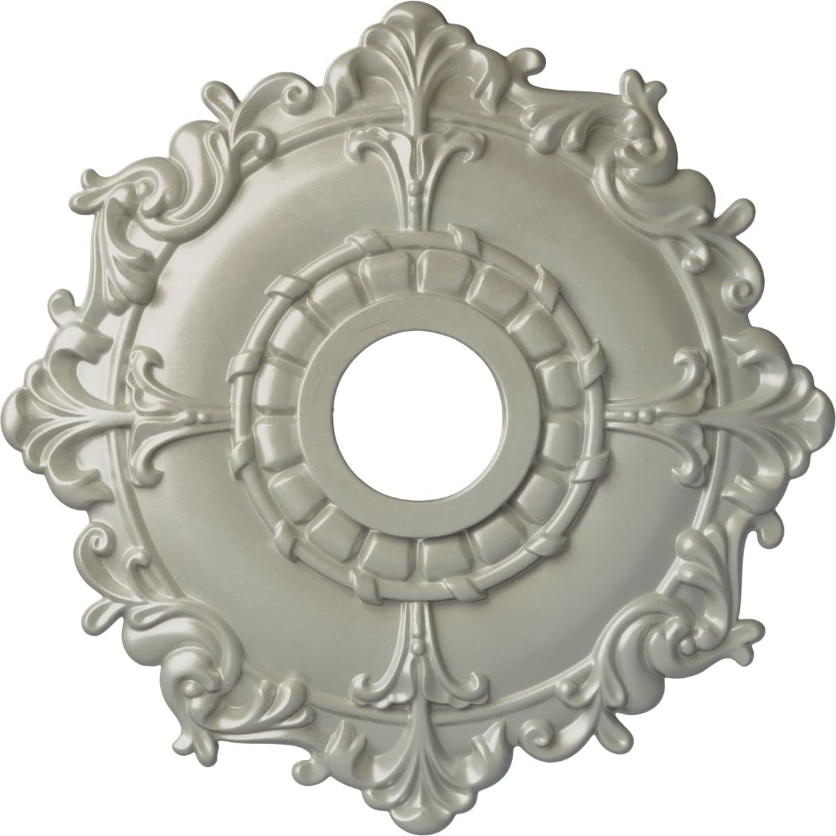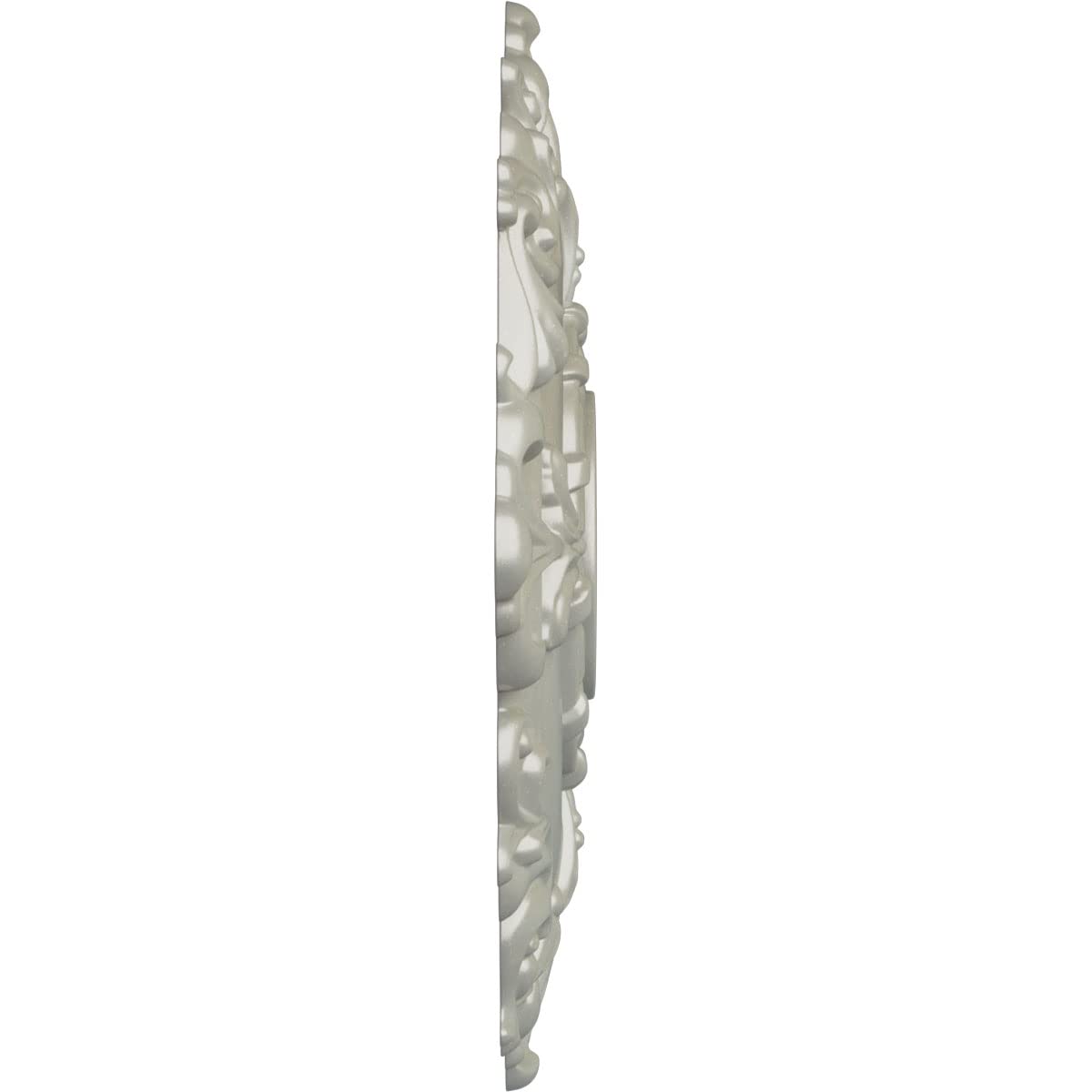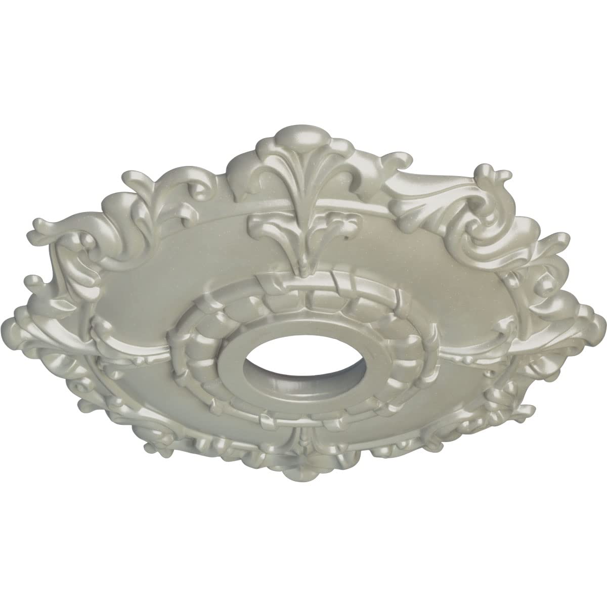 Q: What are the dimensions of the Ekena Millwork Riley Ceiling Medallion?A: The Ekena Millwork Riley Ceiling Medallion measures 18 inches in outside diameter, 3-1/2 inches in inside diameter, and has a projection of 1-1/2 inches.