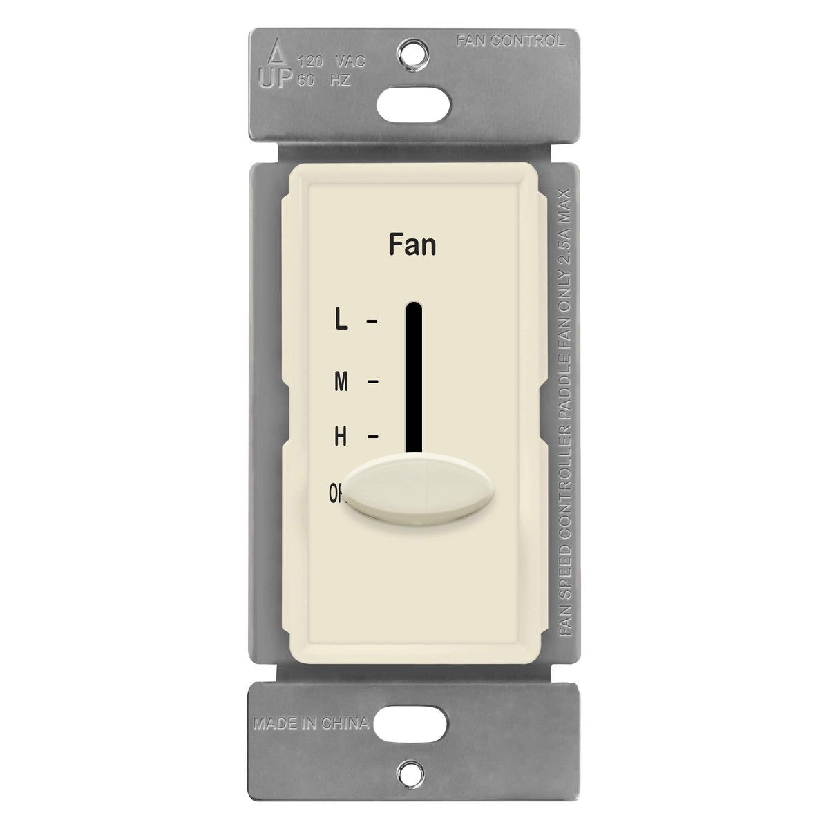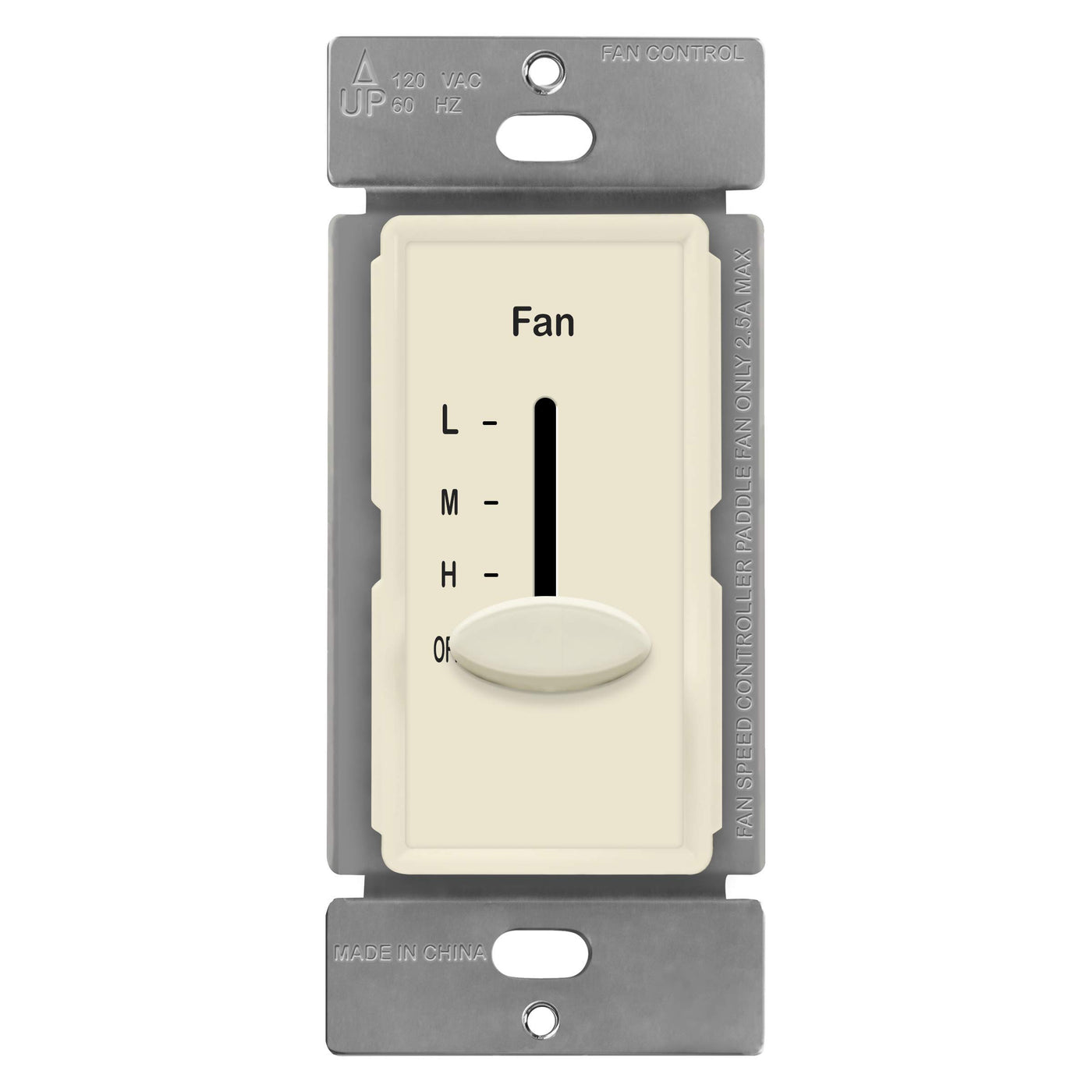 The Enerlites 17000-F3-La Is An Easy-To-Use Wall Switch That Allows The User To Control A 3-Speed Ceiling Fan From A Separate Location. This Fan Wall Switch Is Designed To Fit A Standard, 1-Gang Wall Box To Allow For Convenient Ceiling Fan Speed Control. The Switch Features A User-Friendly Slider That Can Easily Switch Between Low, Medium, And High Fan Speeds. To Shut The Fan Off Completely, Simply Push The Slider All The Way Down. This Ceiling Fan Switch Features A Light Almond Color And Should Be Used With Enerlites Light Almond Decorator Wall Plates For The Best Fit And Color Match (Recommended Model 8831-La, Sold Separately). The Wall Switch Is Capable Of Controlling Ceiling Fans Up To 2.5A. This Fan Wall Switch Is Only Compatible With Mechanical Three-Speed Fans, Such As A Standard Ceiling Fan With Pull Chains. A Neutral Wire Is Required For Installation, And Professional Installation Is Recommended. This Product Is Etl Listed And Includes A One-Year Warranty.