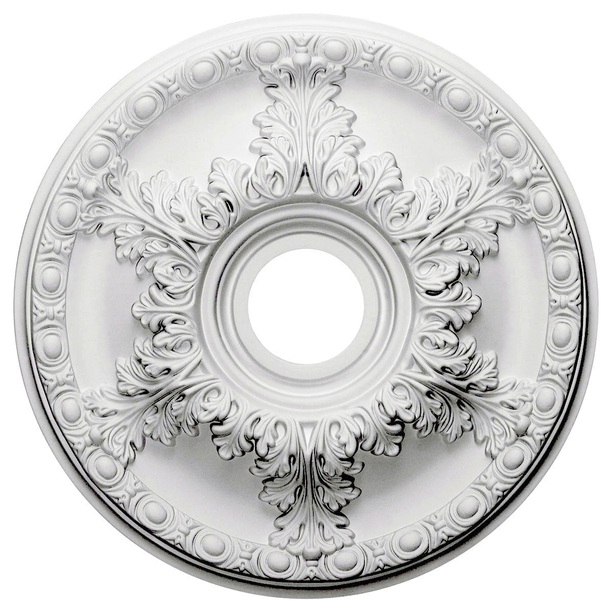 Cm18Ga Features: -Ceiling Medallion. -Material: Urethane. -Granada Collection. Product Type: -Ceiling Medallion. Molding Use: -Ceiling. Material: -Urethane. Generic Dimensions: -Inside Diameter: 3 1/2''. Dimensions: Overall Height - Top To Bottom: -18 Inches. Overall Product Weight: -1.43 Pounds. Overall Width - Side To Side: -18 Inches. Projection From Wall: -44.45 Millimeters.