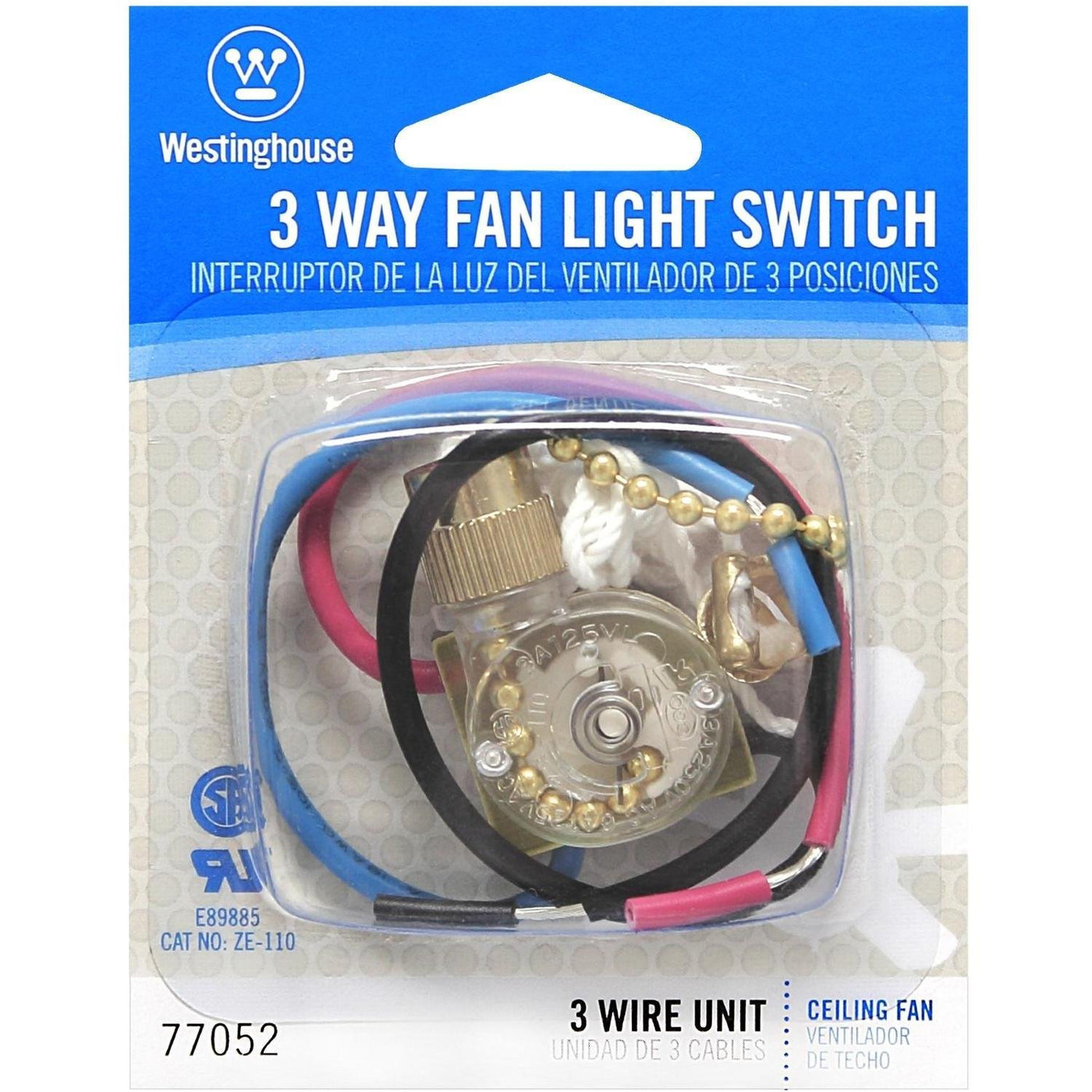 Westinghouse Lighting Corporation, 3 Way Fan Light Switch With Pull Chain 3 Wire Unit Carded, Easy To Install, Light Switch.