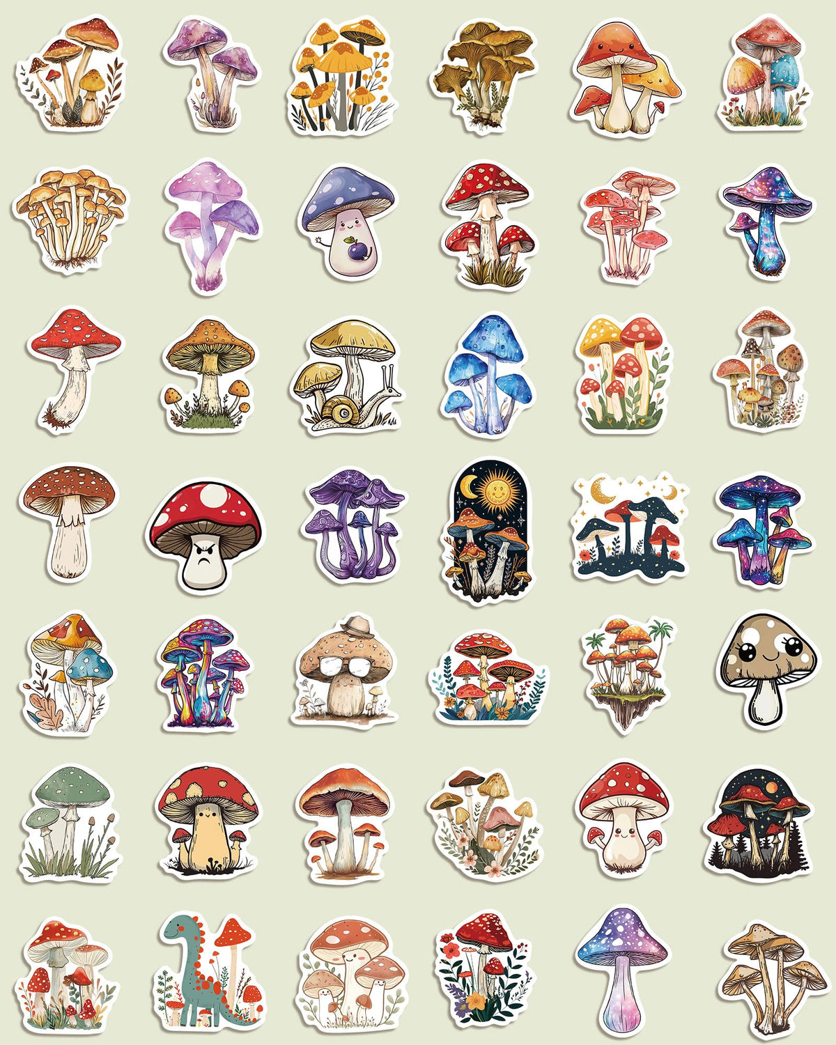 100 Pcs Mushroom Stickers Aesthetic, Cute Stickers Mushroom Decor Party Favors For Kids Teens Adults, Vinyl Waterproof Stickers