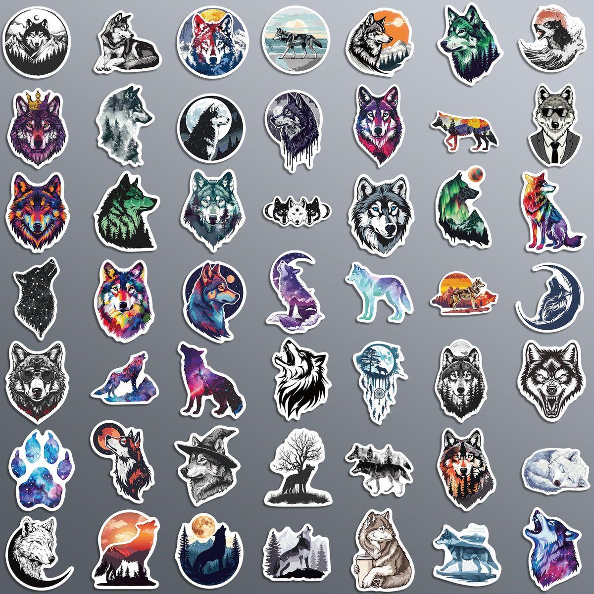 100 Pcs Wolf Stickers,Wild Wolf Gifts For Kids Teens Girls,Unique Designed Vinyl Waterproof Stickers For Hydroflask Water Bottle Laptop Computer Skateboard