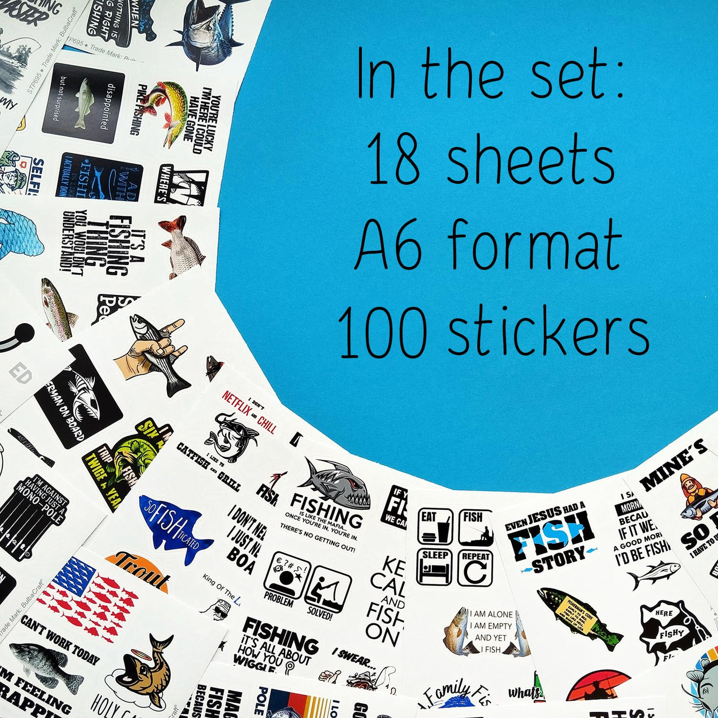 100Pcs Funny Fishing Stickers Fisherman Decals For Laptops, Water Bottles, Scrapbooking Fishing Gifts For Men & Women, Gift