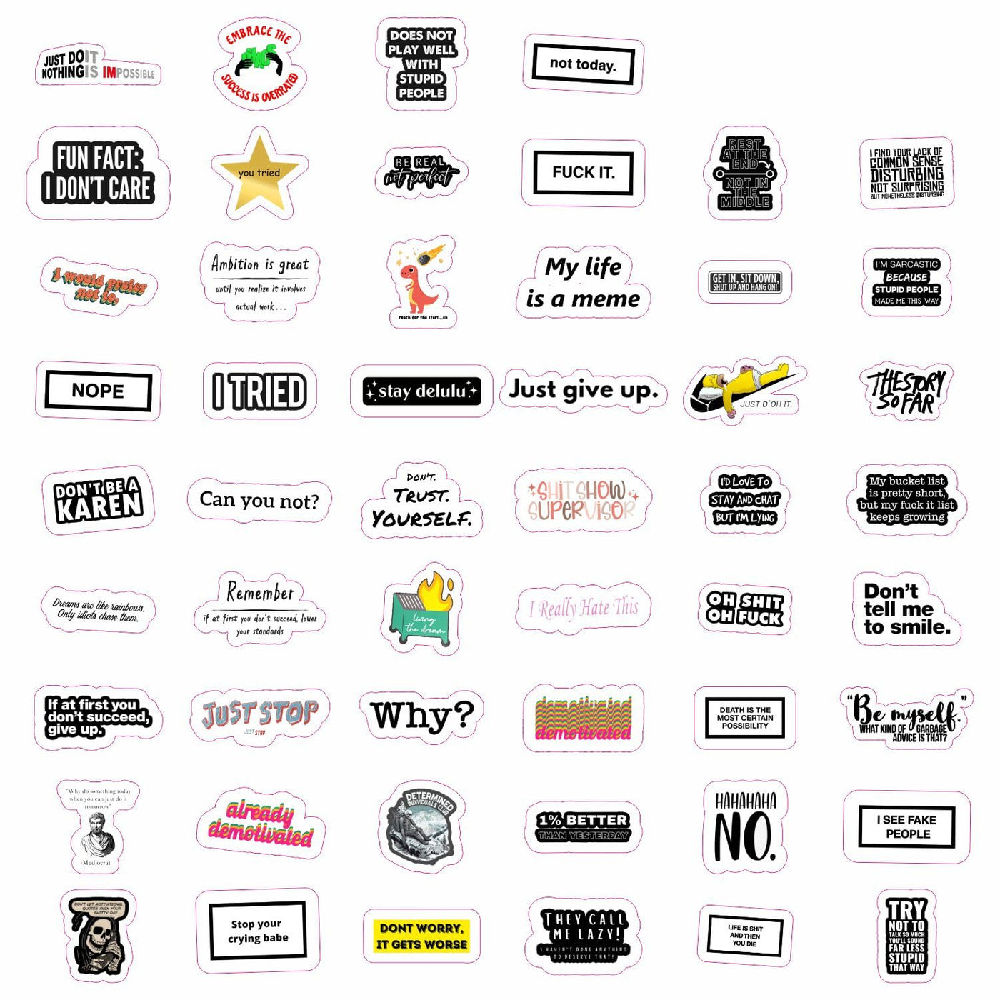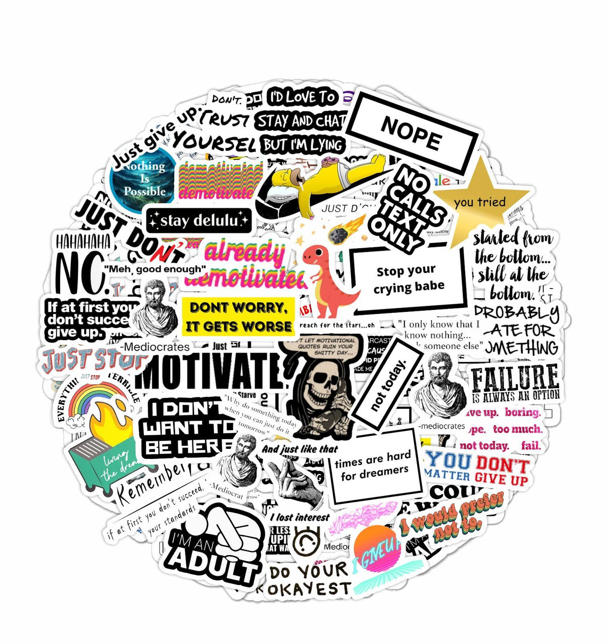 High Quality - You Can Be Sure That Only High-Quality Vinyl Is Used For Demotivational Stickers. Our Stickers Are Made Of Durable Vinyl Material, Ensuring Long-Lasting Adhesion And Vibrant Colors. | Sticker Sheets - Demotivational Sticker Pack Contains Several Sheets. Sticker Sheets Are Less Likely To Get Damaged Or Bent Compared To Loose, Cut-Out Stickers. | Waterproof - Demotivational Stickers Are Designed To Be Waterproof, So They Are Perfect For Use On Water Bottles And Outdoor Items. | Perfect Gift - Surprise Your Friends And Family With These Fun And Expressive Demotivational Stickers, Perfect For Any Occasion. Stickers Are A Great Gift For Anyone Who Loves Personalizing Their Belongings. | Decor - Perfect For Decorating Laptops, Phones, Skateboards, Luggage, Bikes And More. Use Them As Demotivational Stickers Party Favors And Demotivational Stickers Party Decorations. Let Your Creativity Run Wild With Our Diverse Sticker Designs.