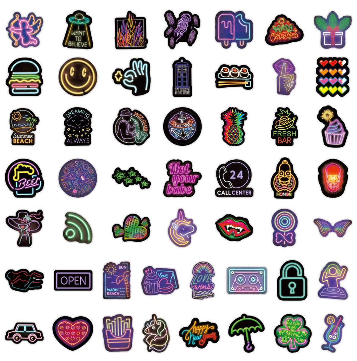 Q: How many unique stickers are included in the pack?A: The pack contains 200 unique neon stickers, allowing for a diverse range of designs without any repetitions.