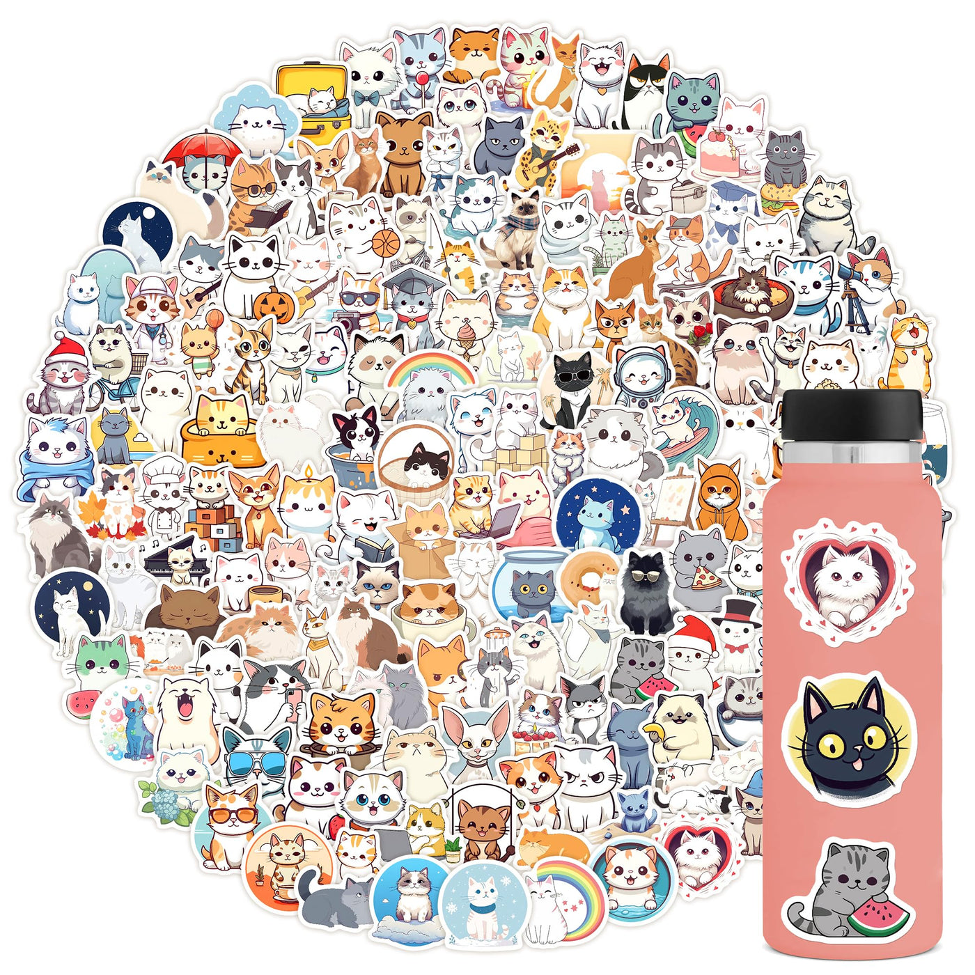 202 Pcs Cat Stickers,Funny Cat Stickers Waterproof Vinyl Gifts For Laptop,Water Bottle,Phone,Luggage,Unique Designed Cat Stickers For Teens Adults Kids Boys Girls Birthday Party Supplies Decoration