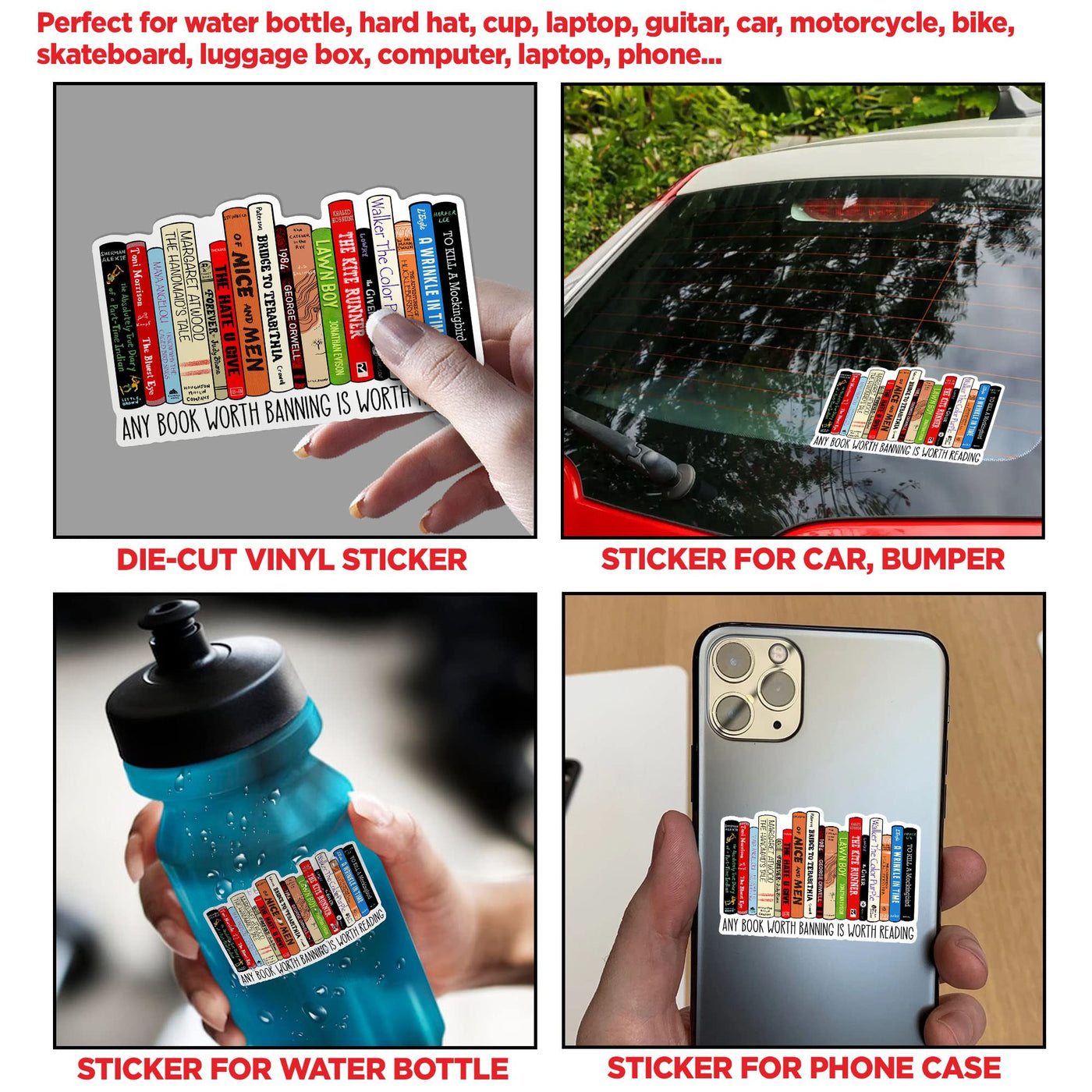 (3Pcs) Any Book Worth Banning Is Worth Reading Sticker Banned Book Reading Stickers 3In Die Cut Waterproof Vinyl Sticker For Har