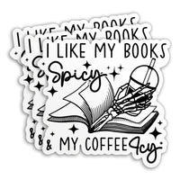(3Pcs) I Like My Books Spicy And My Coffee Icy Sticker Funny Skeleton Book Lover Iced Coffee Bookish Reader 3'' Waterproof Die C