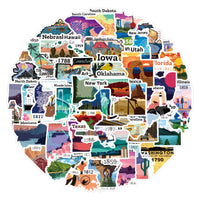 50Pcs United States Travel Map Stickers Pack, Waterproof Vinyl Stickers For Scrapbook Water Bottles Laptop Guitar Computer Phone
