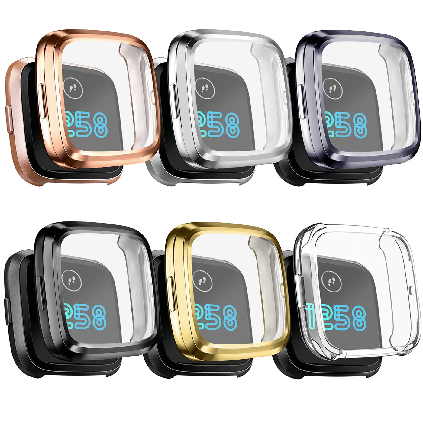 [6 Pack] Mugust Screen Protector Compatible With Fitbit Versa 2 Case, Tpu Plated Full Around Protective Case Cover (Black, Space