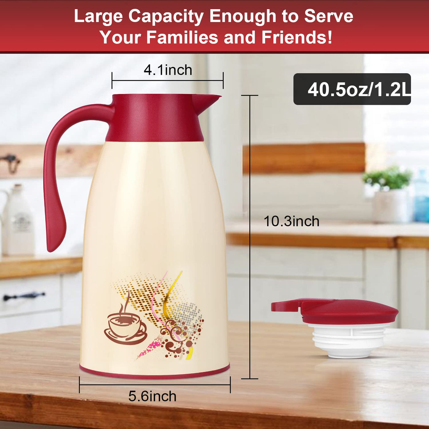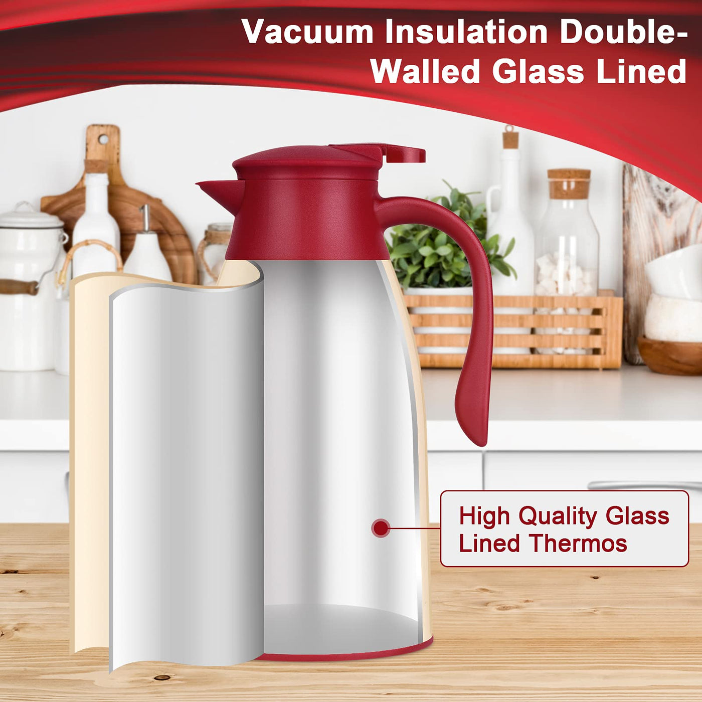 Acechef 40.5 Oz Glass Lined Thermal Carafe, Insulated Coffee Carafe, Coffee Thermos, Tea Pot With Lid, Vacuum Insulated Thermal