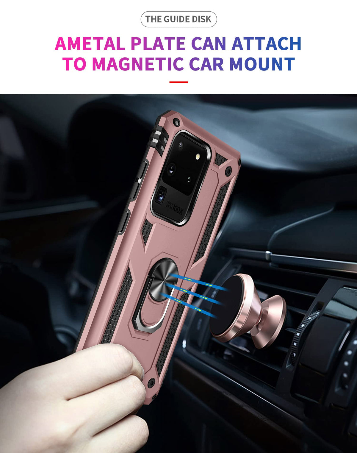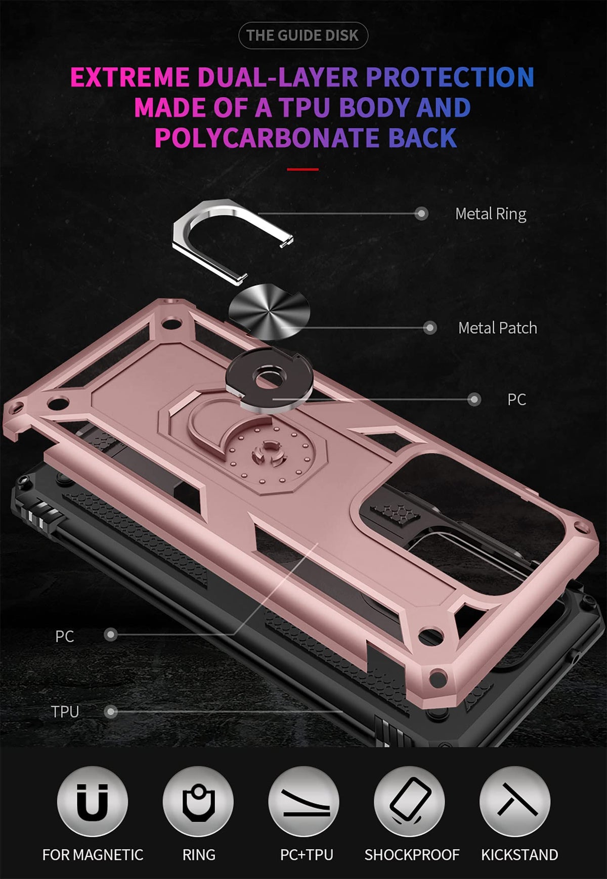 Meets Military Grade 810 1-G Compliancy,Certified To Protect Your Phone 360A Rotable Kickstand Design Dual Layer Hybrid Ultra Protective Case Unique Shock-Absorption Design,The Use Of Air Cushion Technology To Protect All Corners Raised Bezels For Enhanced Protectiorr Packed Into A Solid Frame With A Timeless Look The Case Can Be Used With The Magnetic Car Bracket Package Include:1X Case