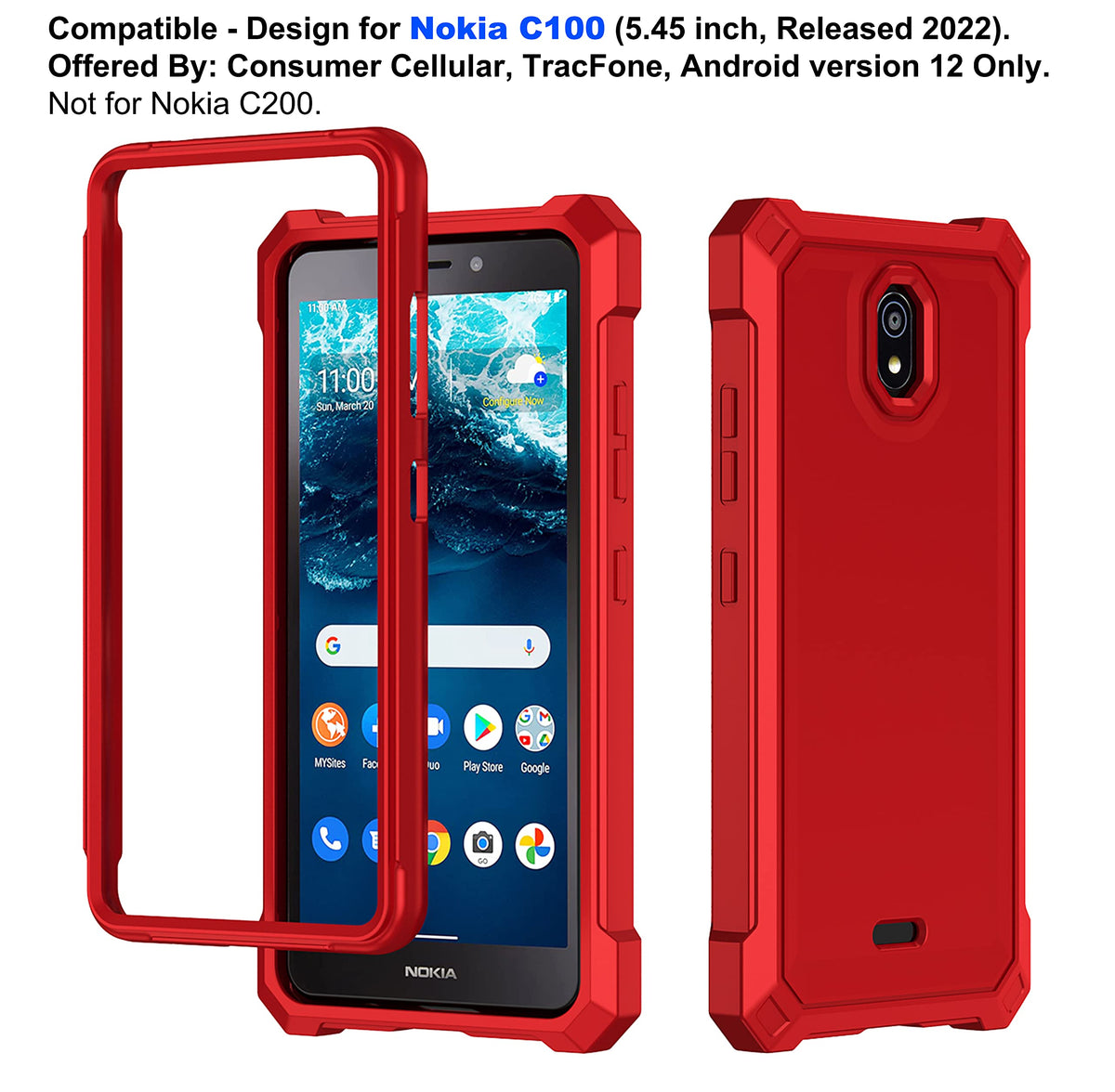 We Also Have Other Great Designs And Colors Welcome To Search Nokia C100 And Find Something New Product Features: 100% Brand New And High Quality Package: 1 X Dual-Layer Air-Guard Corners Military Grade Case With Tempered Glass Full Screen Protector For Nokia C100 (545 Inch, Released 2022) Offered By: Consumer Cellular, Tracfone, Android Version 12 Only Not For Nokia C200 Phone Is Not Included About Us: Ailiber A Brand Focused On Electronics Accessories For Years Our Team Works To Bring High-Quality, Multifunctional And Durable Designs To Our Customers We Also Have Wholesale Customization Demand Attention: If You Find Any Question, Please Contact Us First We Will Provide You With A Satisfactory After-Sales Service In 24 Hours Tips To Help You Better Install Your Screen Protector You Can Search Some Videos About How To Install Screen Protector First 1 Keep Hands Clean And Dry Before Installation If Needed, Search For The Installation Video On The Internet First 2 Gently Pick Up The Tempered Glass From The Case 3 Predict Installation Position On The Phone (Align And Tag Guide Sticker) 4 Make Sure To Clean All The Dust And Fingerprints On The Screen (1)Wet Wipes (2)Dry Wipes (3)Dust Absorber 5 Peel Off The Clear Thin Protective Film From The Screen Protector Back Before Applying On The Phone 6 Put The Screen Protector Onto The Screen Horizontally And Slowly Tap The Middle Of The Screen Protector And You Are Done Congratulations 7 Normally, The Protector Would Be Installed Automatically If Theres A Bubble, Maybe Theres Dust In It Gently Scrape The Bubble To The Edge With Your Card
