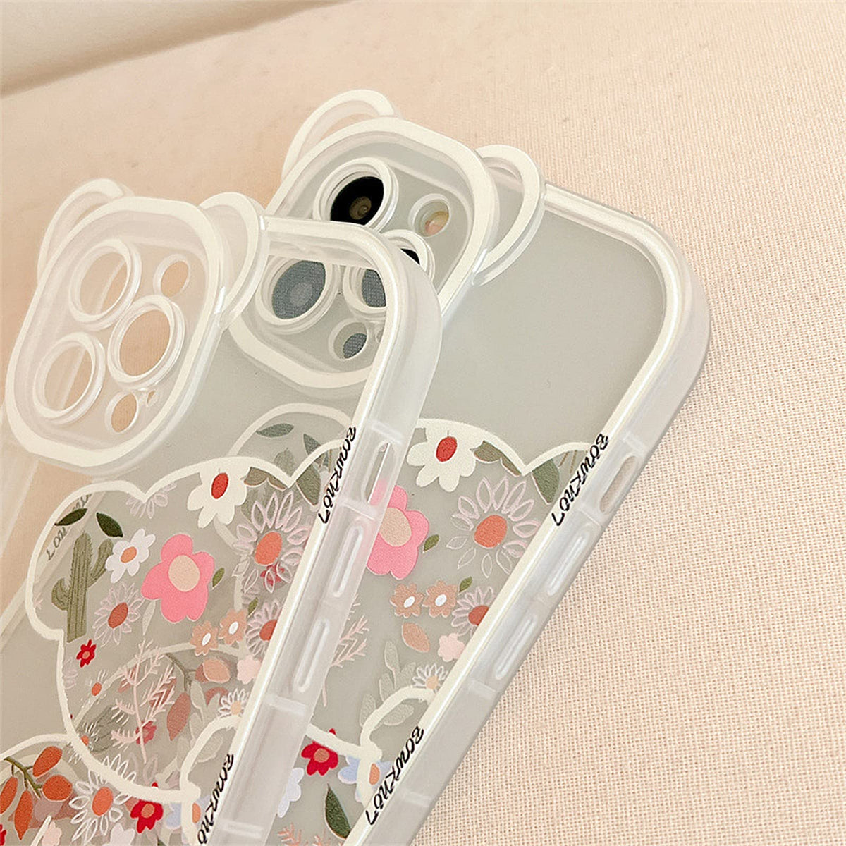 Q: How does the camera protection feature work?A: The case includes a unique camera frame with girly bear ears that not only adds a cute aesthetic but also prevents the camera lens from being scratched.