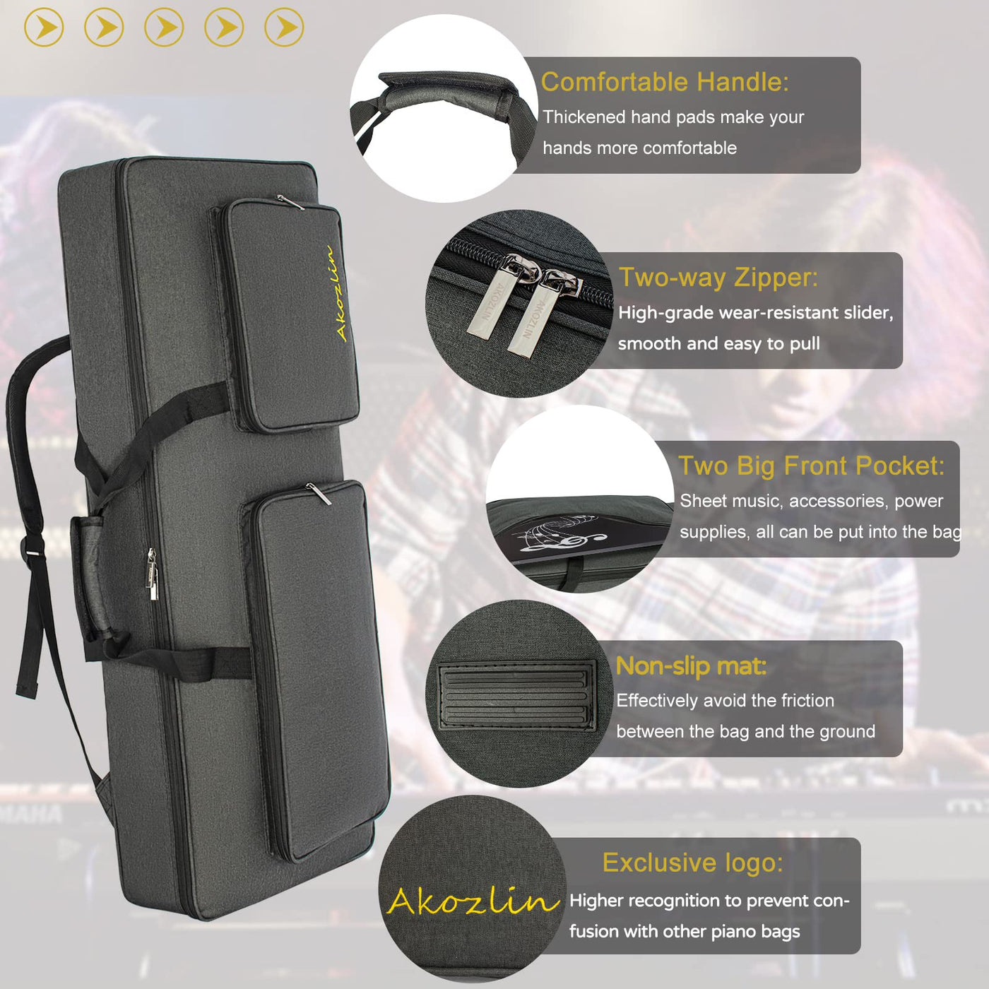 Akozlin 61 Key Full Padded Keyboard Gig Bag, 41.7 17.3 6.3 Portable Electric Piano Keyboard Case Foldable Bag