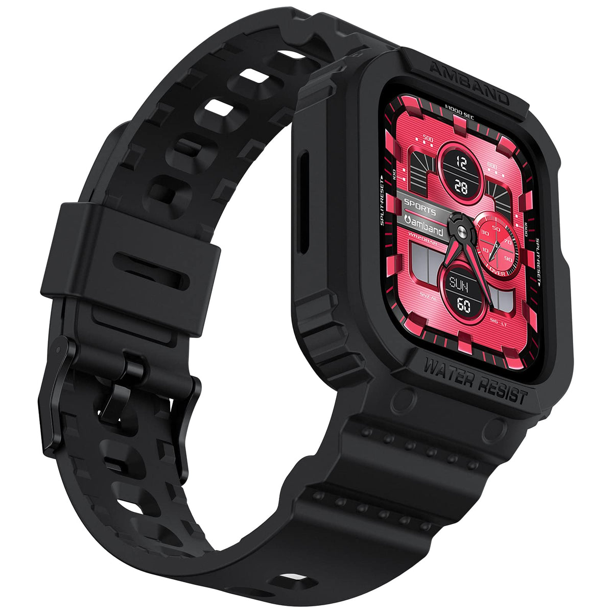 Q: What materials are used in the amBand case and band?A: The amBand case features a combination of rigid polycarbonate and flexible shockproof TPU bumpers, providing military-grade protection against drops and impacts while maintaining comfort.