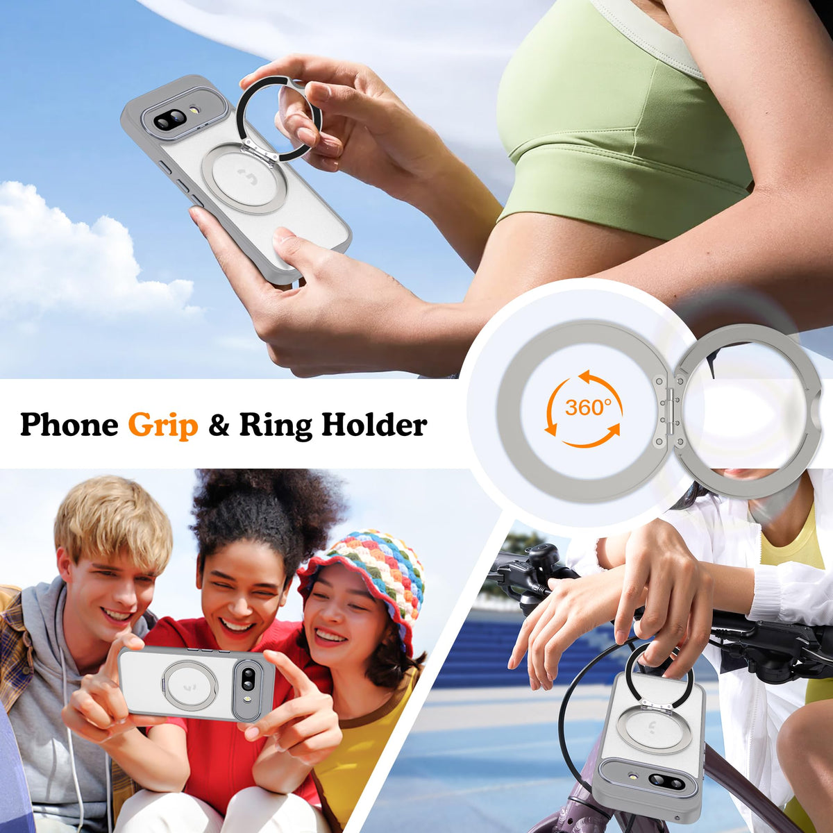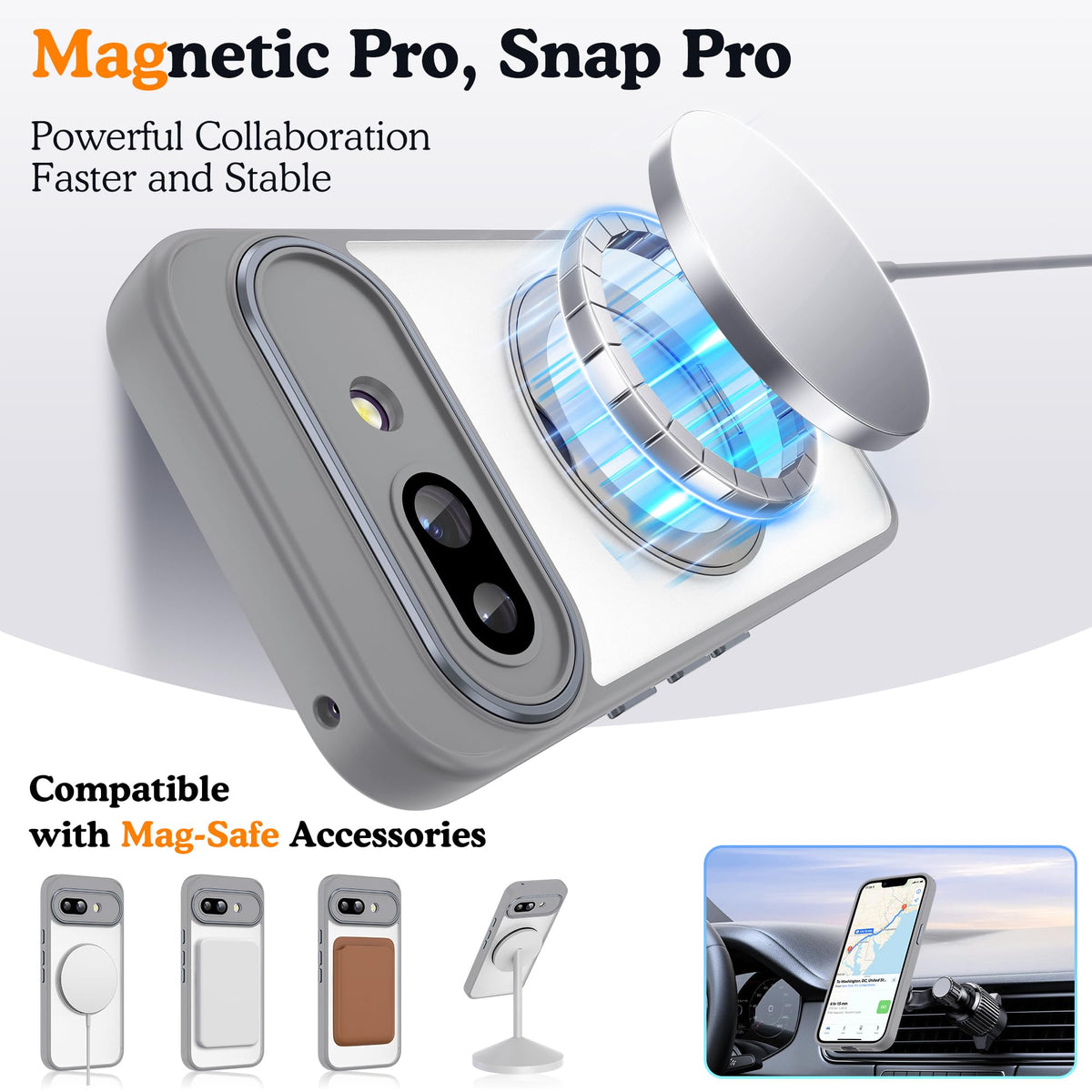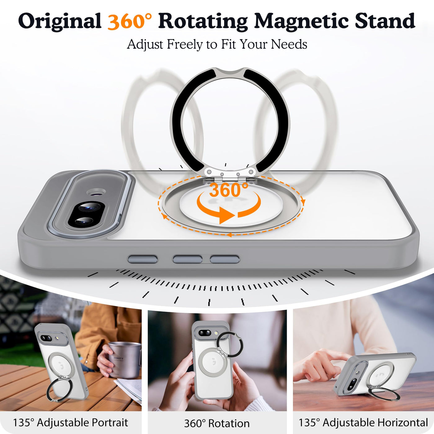 Amoraaqua Compatible With Google Pixel 9 Pro Xl Case With 360 Magnetic Ring Stand [Compatible With Mag-Safe ] Shockproof Translucent Phone Case For Google Pixel 9 Pro Xl 6.8 Inches,Grey