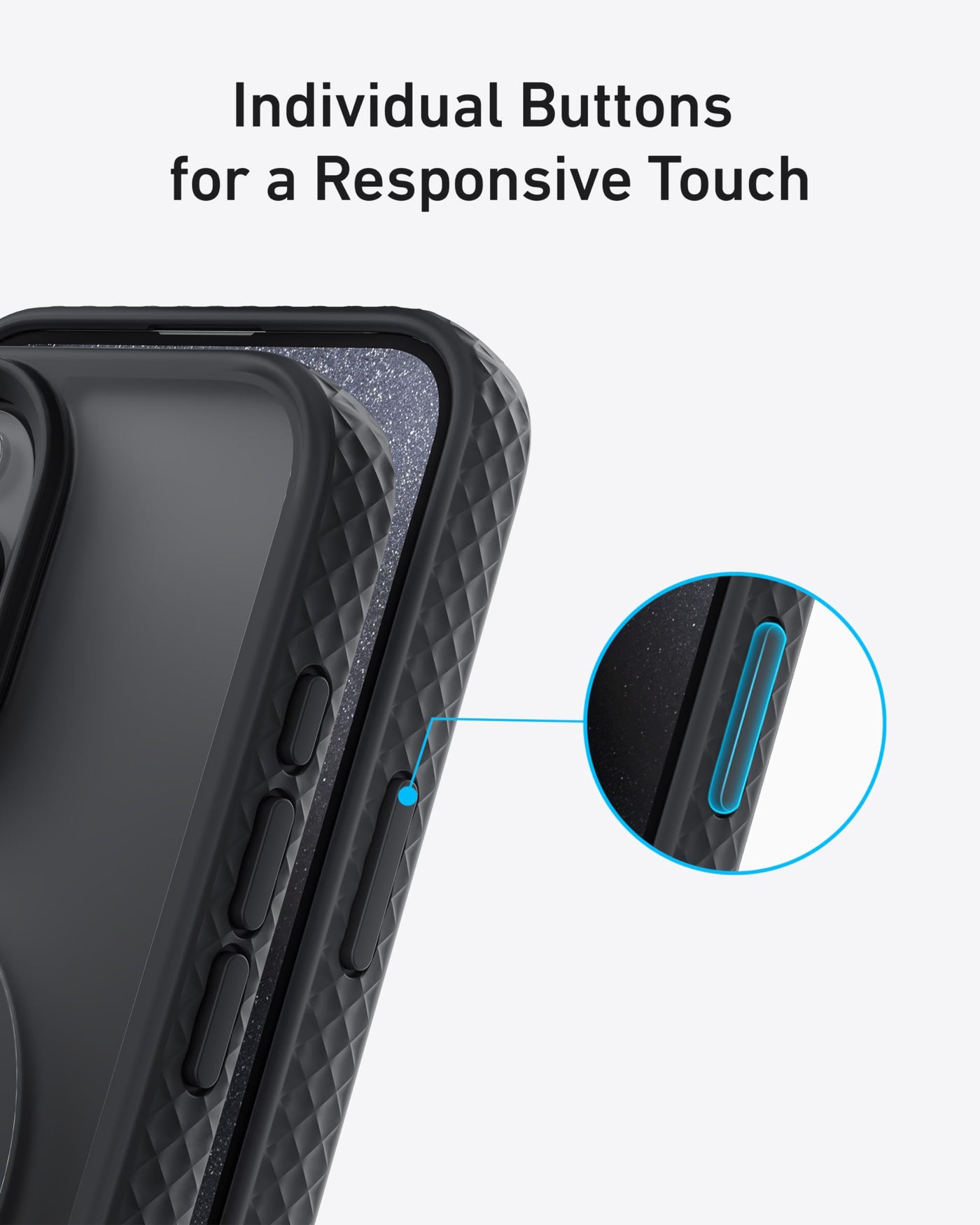 Q: Does this case have individual button designs for better usability?A: Yes, the Anker MagGo Matte Phone Case includes independently designed mechanical buttons that provide a tactile response, allowing for precise control and a noticeable click with each press.