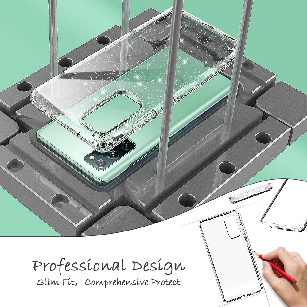 Annsd Galaxy S20 Fe Case(5G),Glitter Clear Sparkly Bling Slim Flexible Tpu Shock Absorption Rubber Full Body Protective Cover Fo