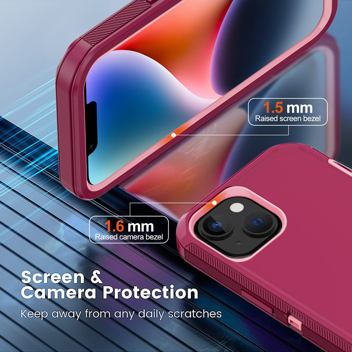 Q: How does the Annymall case protect my iPhone 14 from drops and scratches?A: The case features a 3-layer design with reinforced corners and a full-body protection system that absorbs shocks and prevents scratches, ensuring comprehensive protection for your phone.