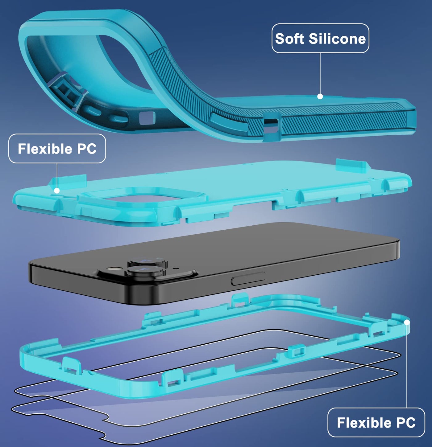 Annymall Iphone 14 Rugged Case (6.1'') Heavy Duty 3 Layer Shockproof, Dropproof & Dustproof W/ 2 Screen Protectors (Lake/Sky B