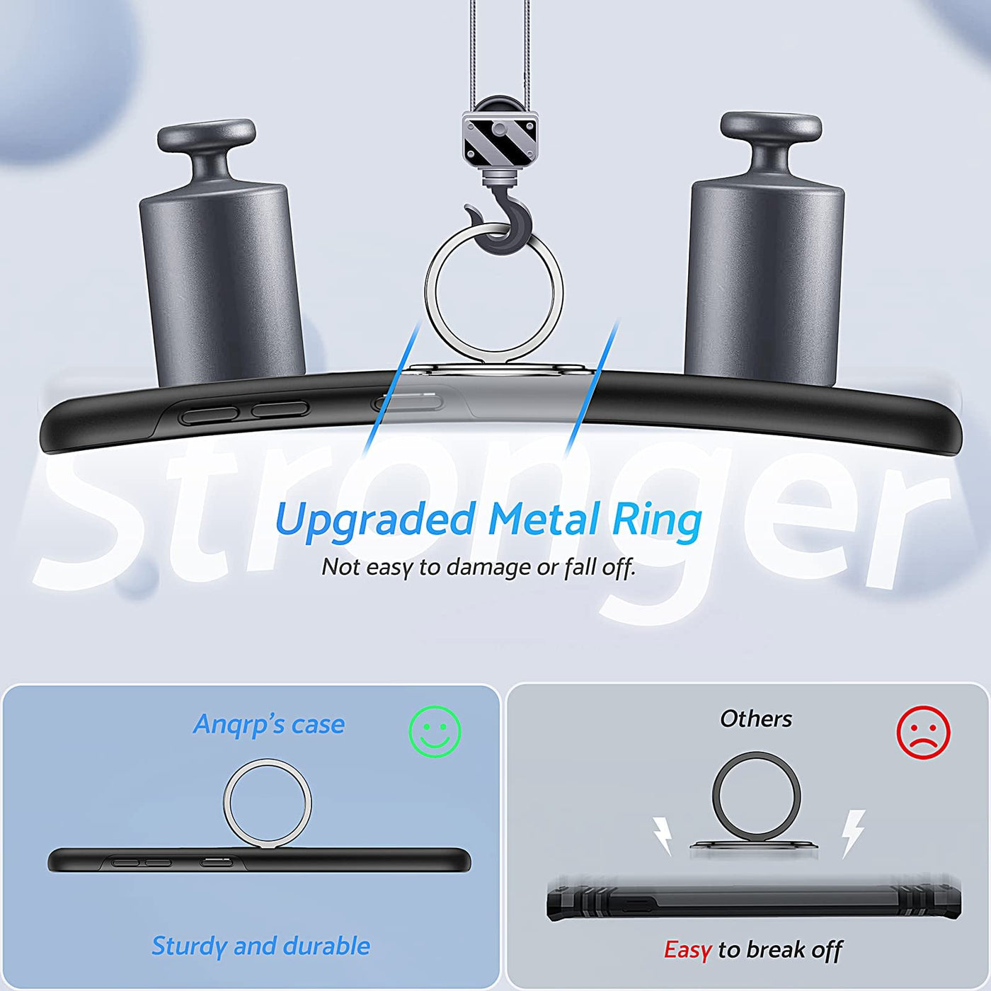 Q: What materials are used in the construction of this phone case?A: The Anqrp Galaxy S21 case is made from high-quality TPU, Polycarbonate (PC), and metal, providing a durable and protective design.