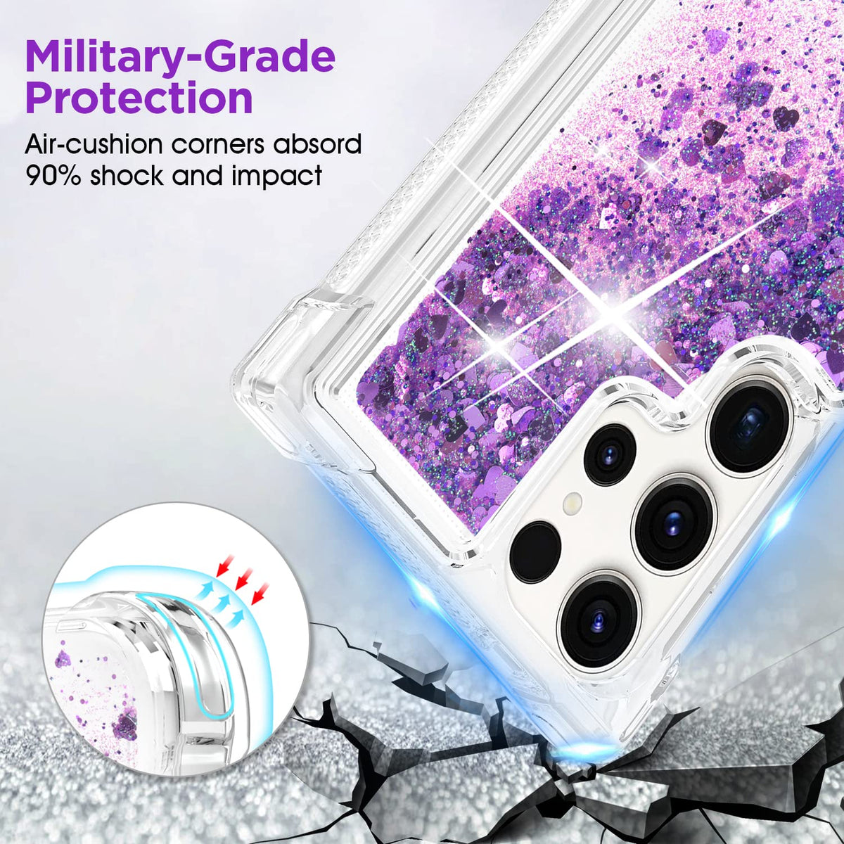 Anshow For Samsung Galaxy S23 Ultra 5G Case Glitter, Shockproof Clear Tpu Case For Galaxy S23 Ultra Case, Bling Purple Glitters