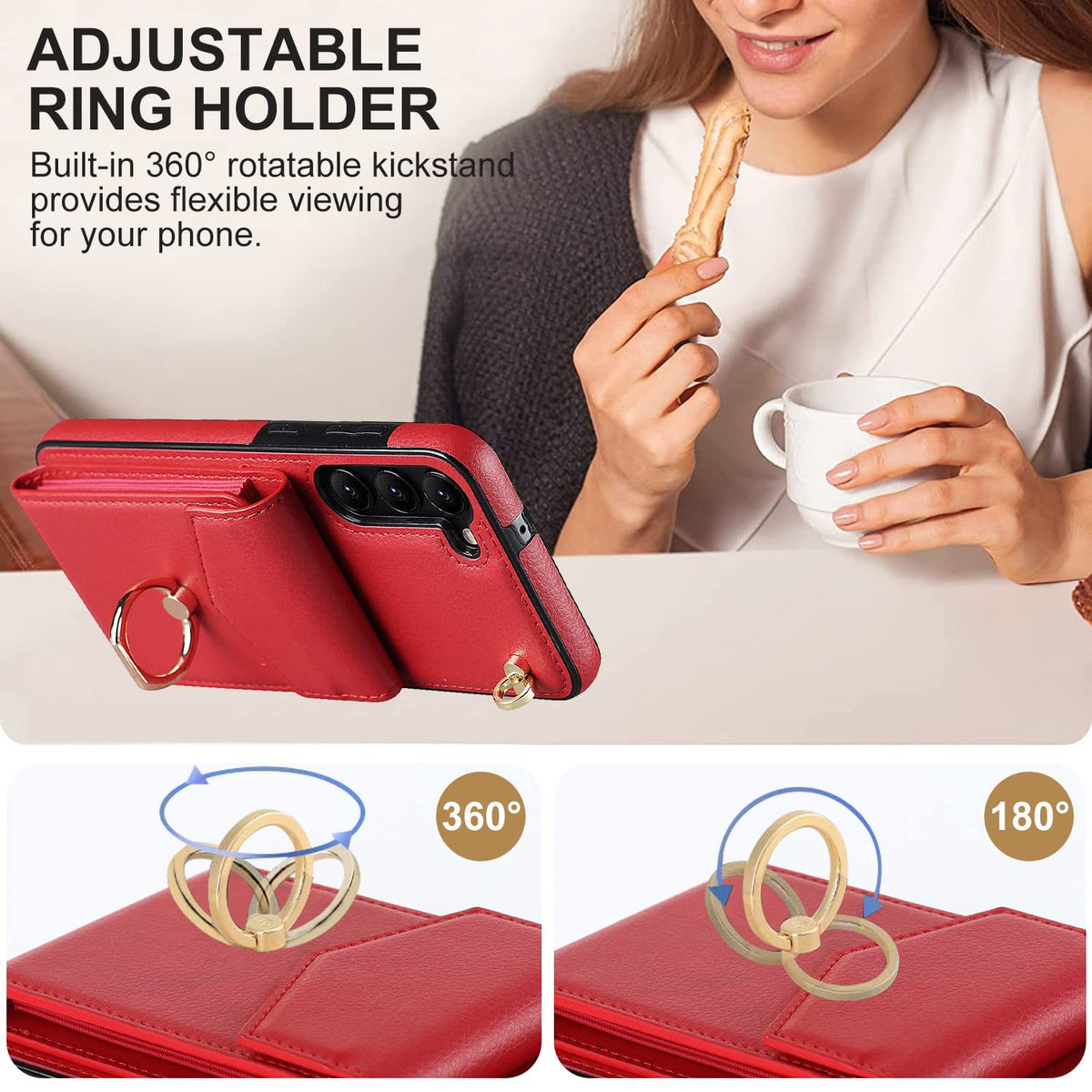 Asuwish Phone Case For Samsung Galaxy S23 Plus 5G Wallet Cover With Tempered Glass Screen Protector And Ring Stand Credit Card H