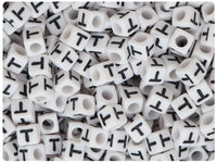 Beadtin White Opaque 7Mm Cube Alpha Beads Black Letter (75Pcs) (Letter T)
