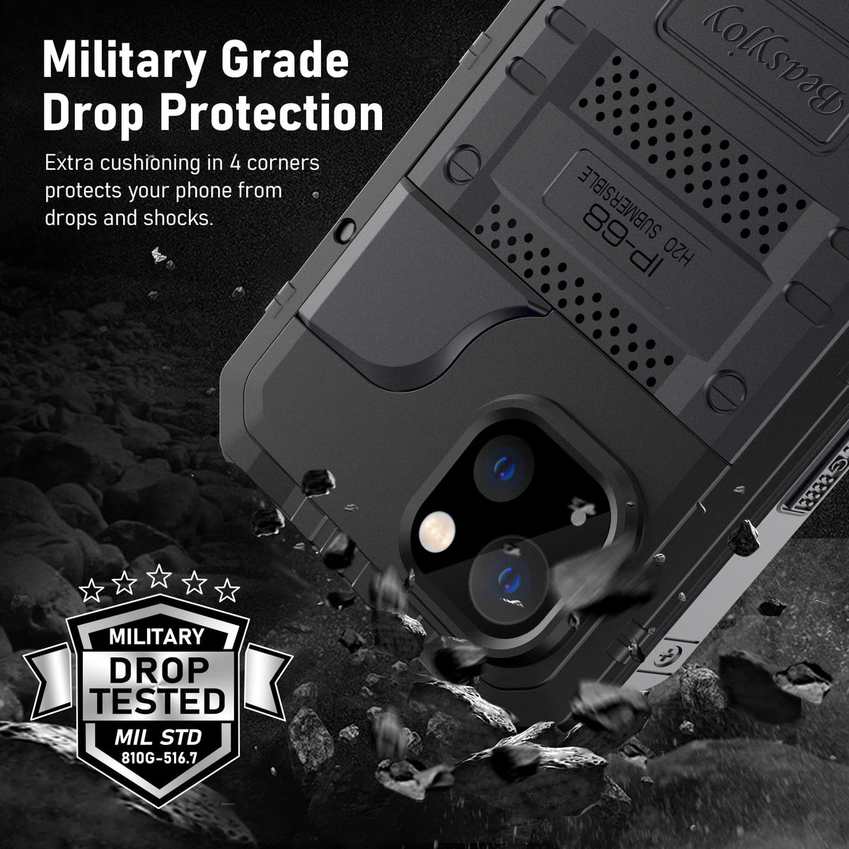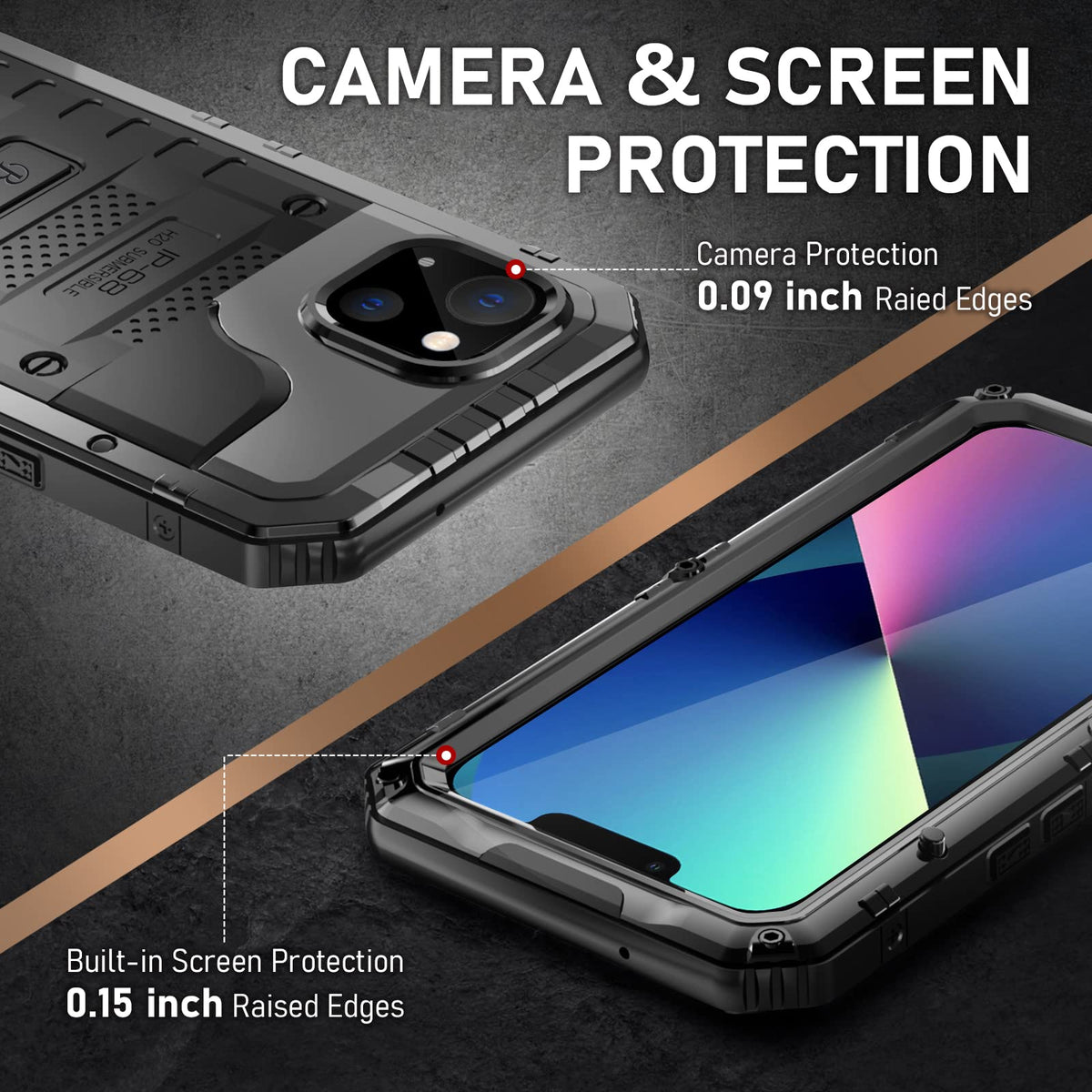 Beasyjoy For Iphone 13 Case Waterproof, Metal Phone Case With Built In Screen Protector, Heavy Duty Full Body Protective Militar