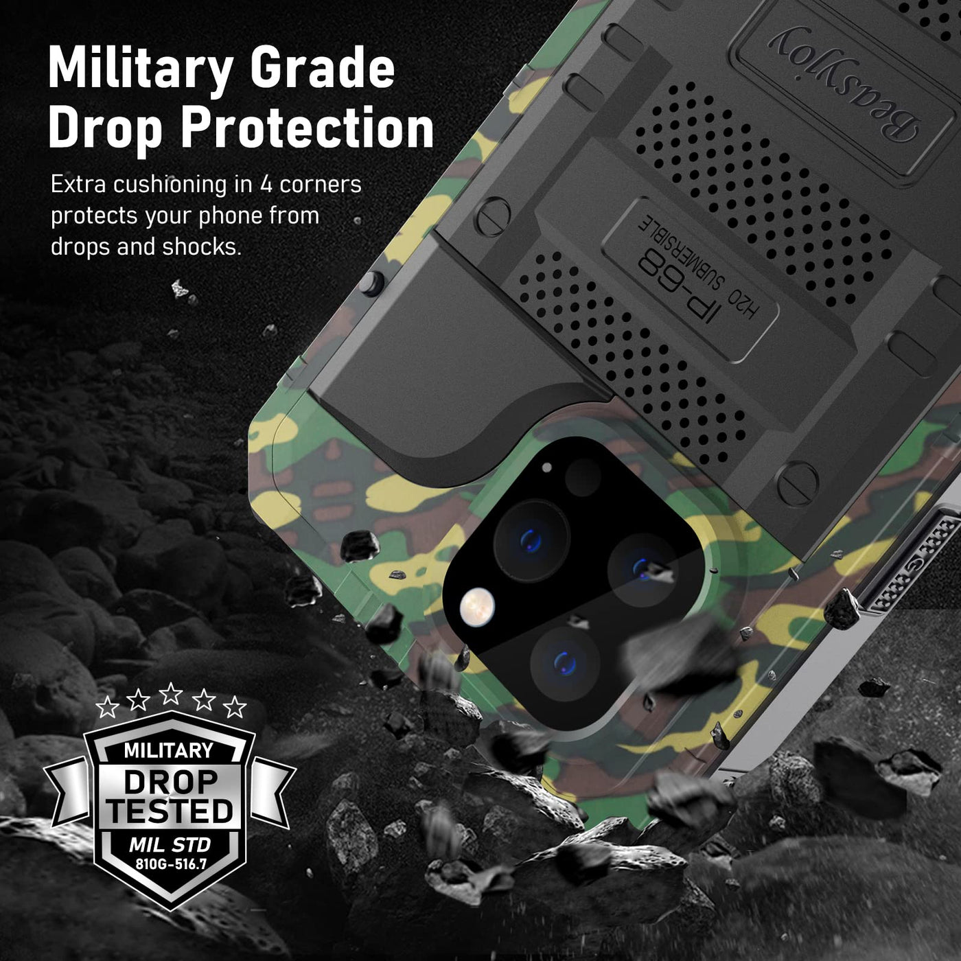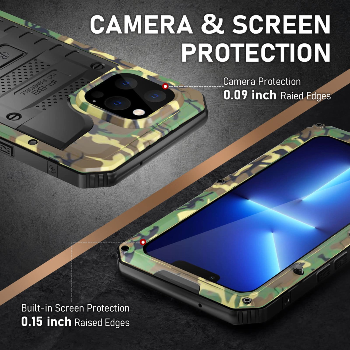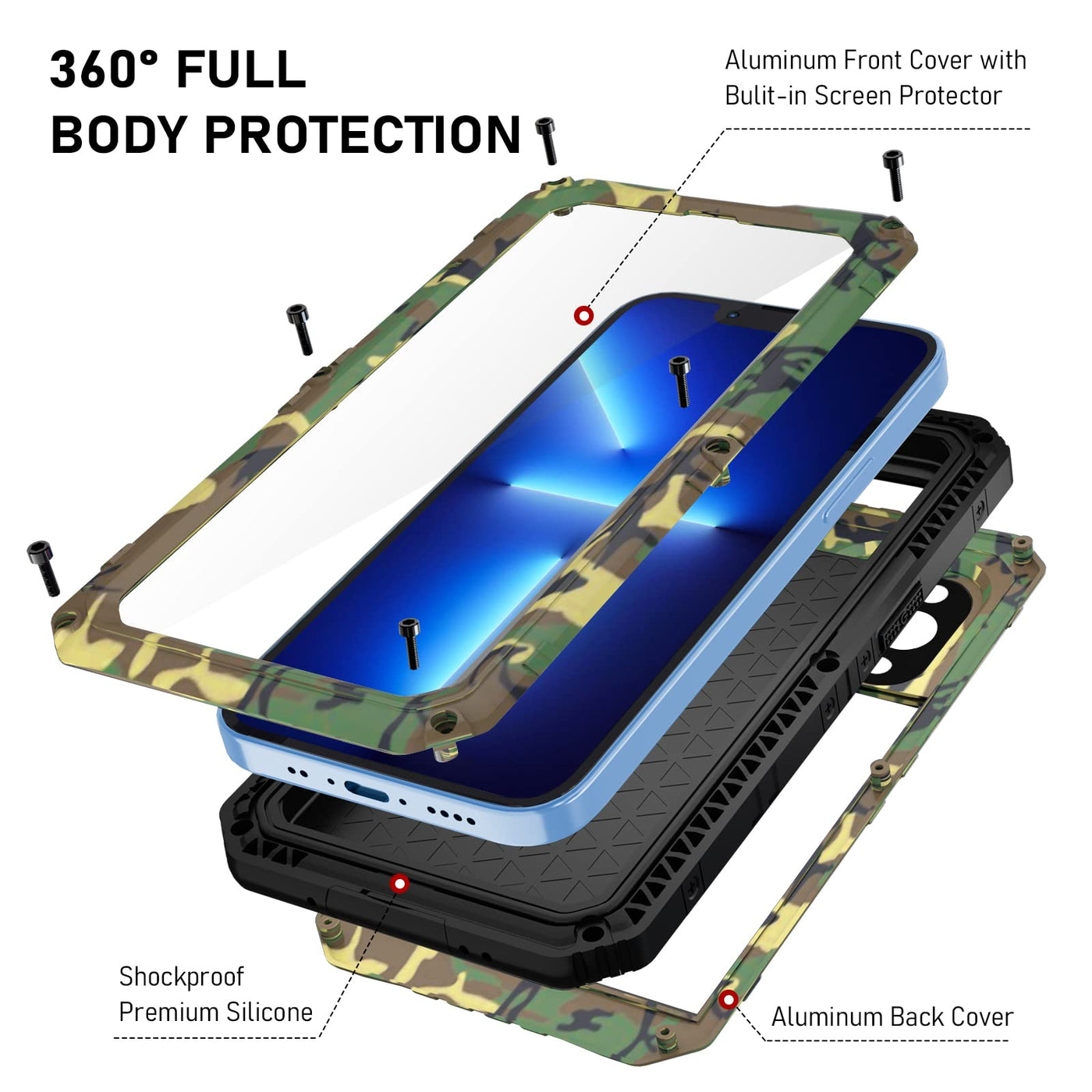 Beasyjoy For Iphone 13 Pro Max Case Waterproof, Metal Military Grade Case With Built In Screen Protector, Heavy Duty Full Body P