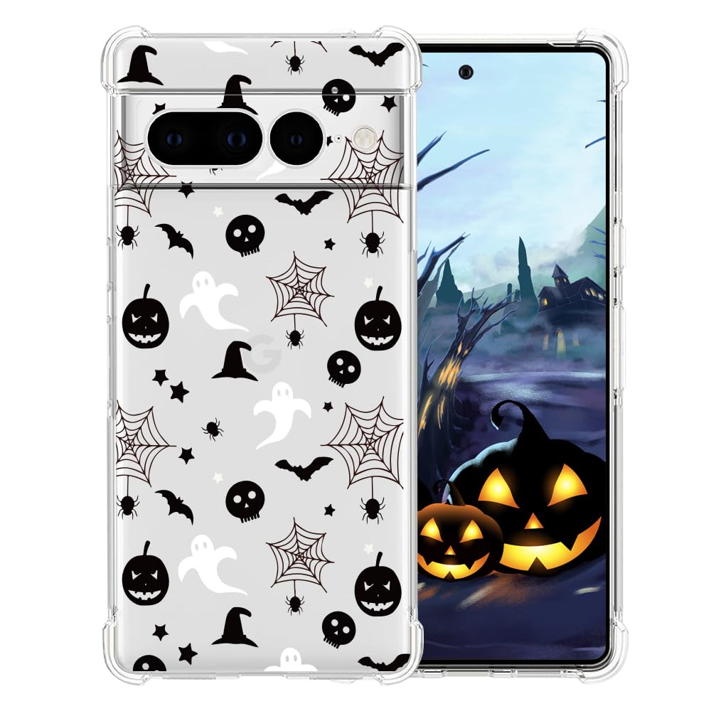 Beimeitu For Google Pixel 7 Pro Case Halloween Pumpkin Skull, Cute Design Women Girls Shockproof Soft Slim Mobile Back Cover Cle