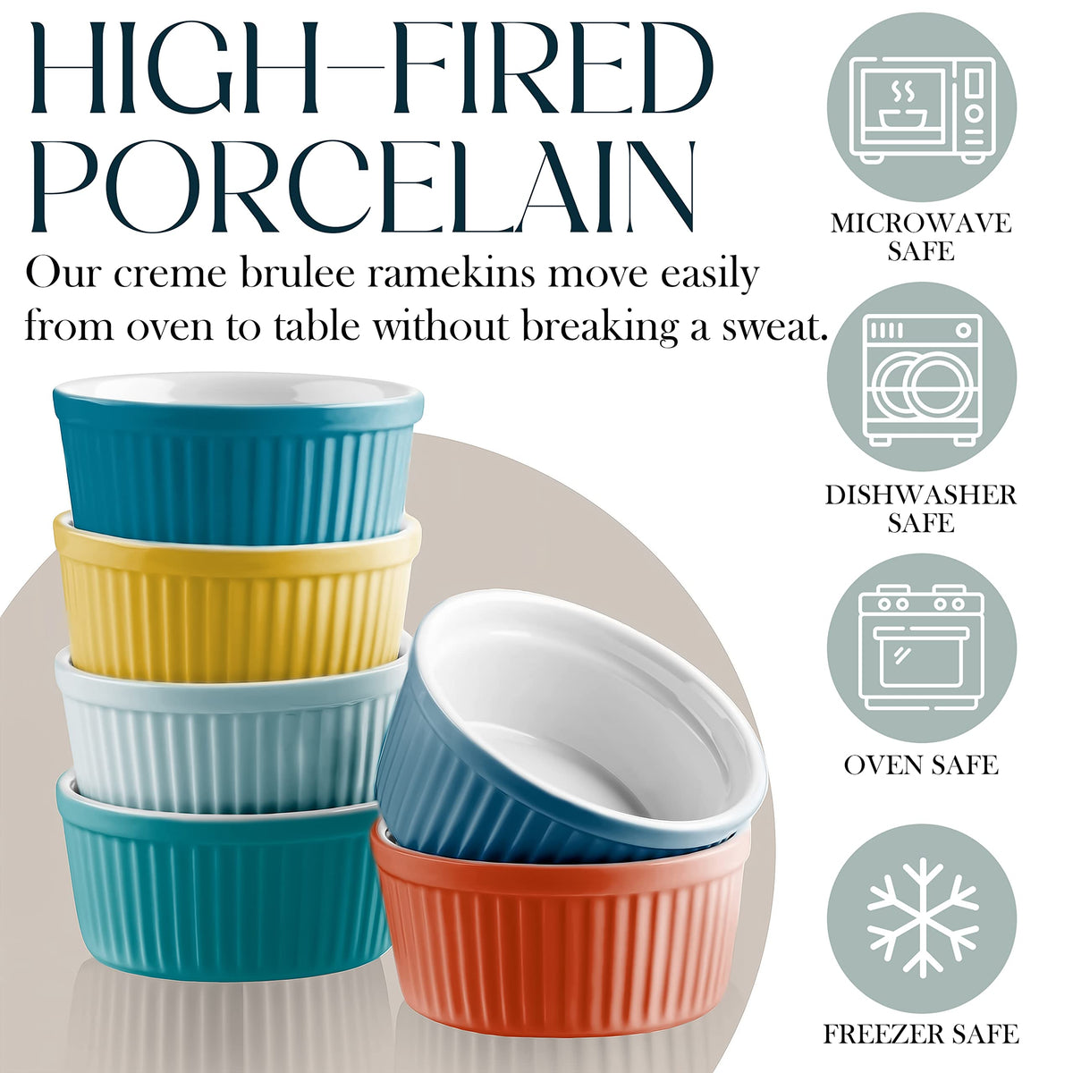From Making Individual Desserts And Baked Eggs To Holding Prepped Cooking Ingredients And Party Dips, Ramekins Can Be Real Workhorses In Your Kitchen And On Your Table So You Need Ones That Are Durable, Versatile And Attractive Like The Bellemain Porcelain Ramekins Thick, Glazed Porcelain Is Sturdy And Healthy Thanks To Their Substantial Thickness, You Dont Have To Handle Bellemain Porcelain Ramekins With Kid Gloves Theyre Glazed Inside And Out So They Wont Absorb Food Odors, Flavors Or Colors, And Will Be Easy To Clean This Also Means That They Wont Leach Any Potentially Harmful Elements Into Your Food As Some Plastics And Metals Do Oven, Microwave, Freezer And Dishwasher Safe These Ramekins Can Do Just About Anything That Requires A Container Bake Lava Cakes In The Oven (Up To 400Af) Organize Your Mise En Place (Chopped And Measured Ingredients) Serve Salsa And Shredded Cheese At Your Taco Buffet Store Leftovers In The Fridge And Reheat Them In The Microwave