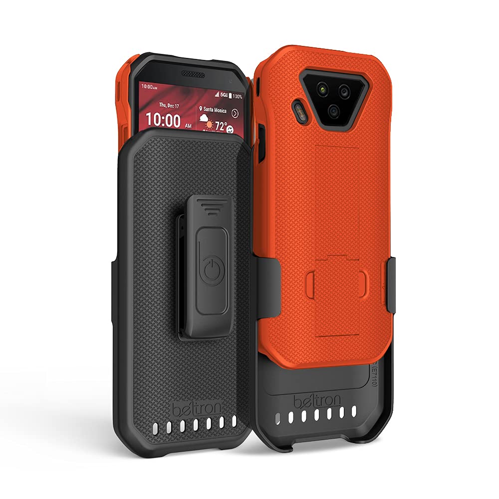 Beltrons Heavy Duty Industrial Shell & Holster Combo Is Custom Designed For Your Kyocera Duraforce Ultra 5G E7110 Defend Against Scrapes, Dirt, And Daily Wear And Tear With The Rubberized Shell Enjoy Convenient Portability Using The Holster A Pivoting 180-Degree Belt Clip Allows For A Secure Attachment And Comfortable Positioning Clip It To Your Belt, Purse Strap Or Backpack And Get An Extra-Secure Grip On Your Duraforce Ultra 5G Using The Cases Rubberized Texture The Rugged Holster Securely Holds The Duraforce Ultra 5G Case The Innovative Belt-Clip Supports Belts, Straps And Latches Up To 16 Wide Slick Slim Strong Wide 45A Opening Is Designed To Fit Any Thickness