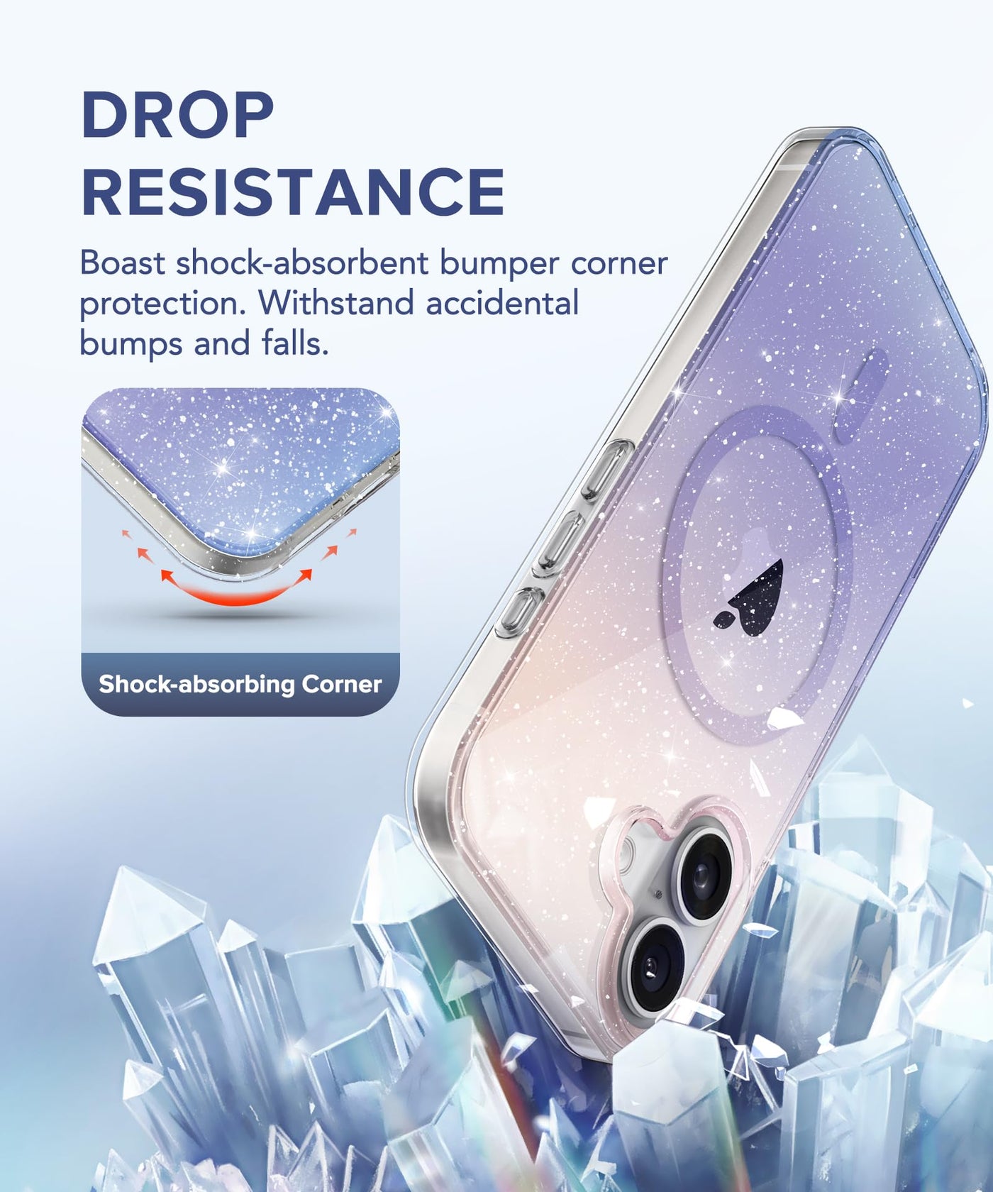 Berfy Compatible With Iphone 16 Plus Case Glitter, [5 In 1] With 2X Screen Protector + 2X Camera Lens Protector, [Non-Yellowing] Clear Sparkle Shockproof Hard Phone Case For Women 6.7'', Gradient