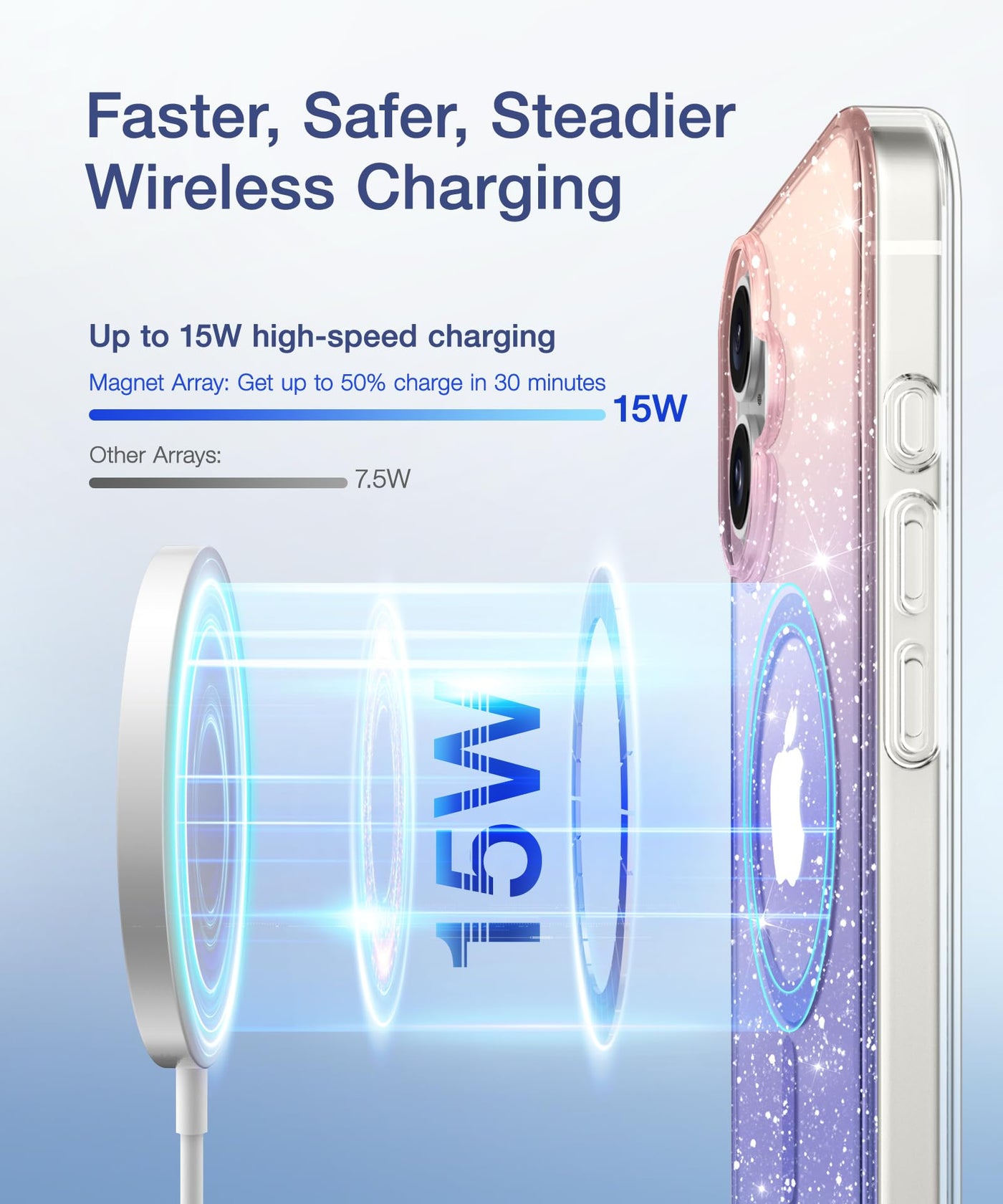 Q: Does this case support wireless charging?A: Yes, the BERFY case is compatible with MagSafe accessories, allowing you to use wireless chargers without removing the case.