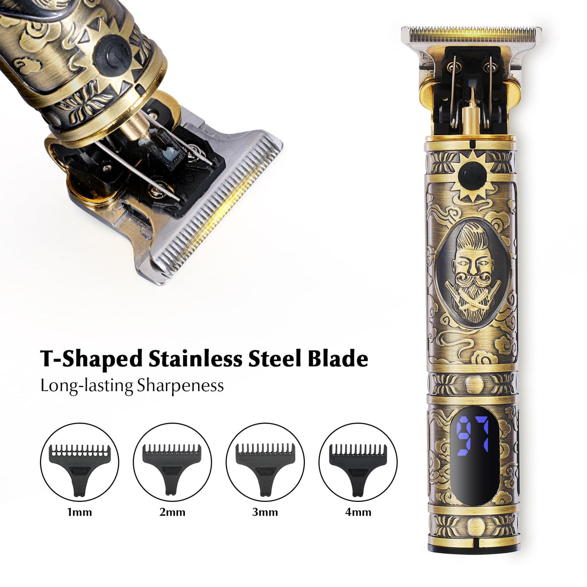 Q: What are the key features of the Bestauty Electric Razor Kit?A: The Bestauty Electric Razor Kit includes a professional cordless hair clipper, a beard trimmer, and a nose hair trimmer. It features sharp T-shaped stainless steel blades for precise trimming, USB rechargeable capability, and an LCD display that shows battery life and energy prompts. The kit comes with multiple guide combs (1mm, 2mm, 3mm, 4mm) for versatile hair lengths, making it suitable for both home and professional use.