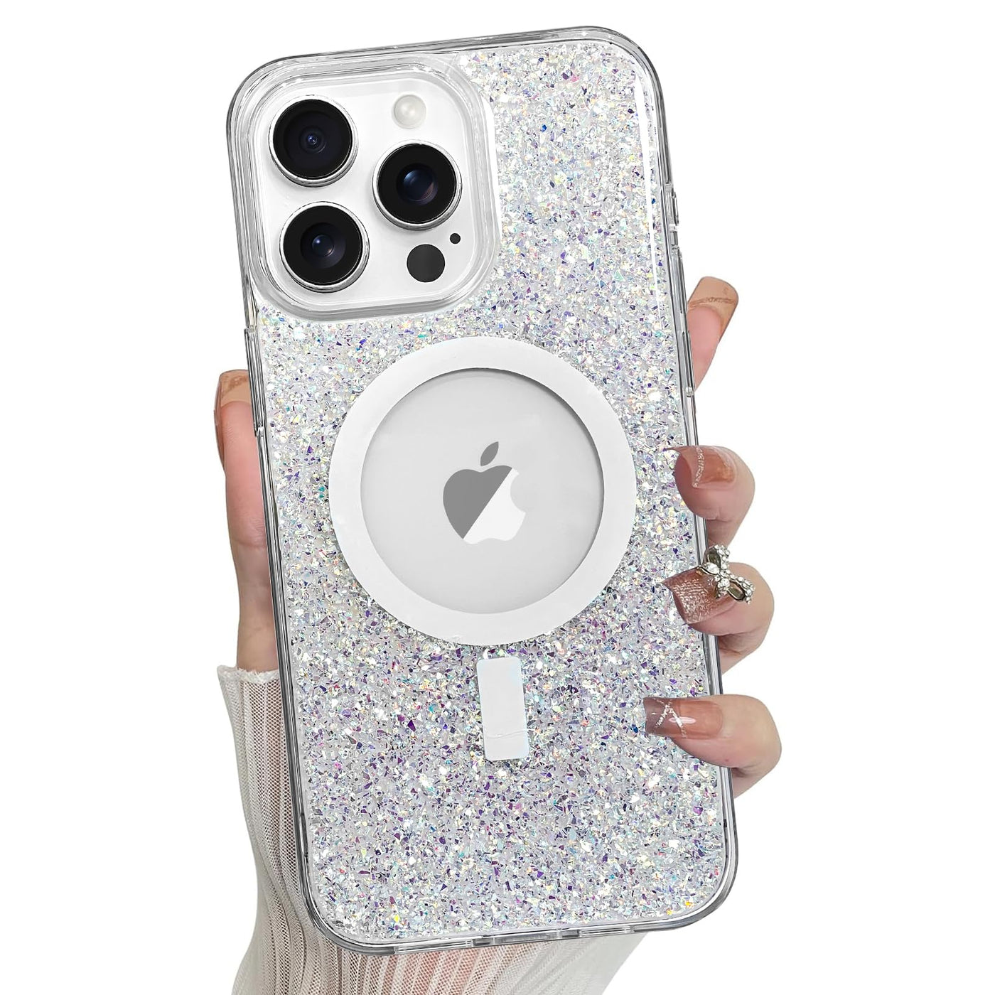Bonoma For Iphone 13 Pro Case, Sparkly Glitter Bling Back, Magnetic Support For Magsafe Shockproof Case, Crystal And Clear High