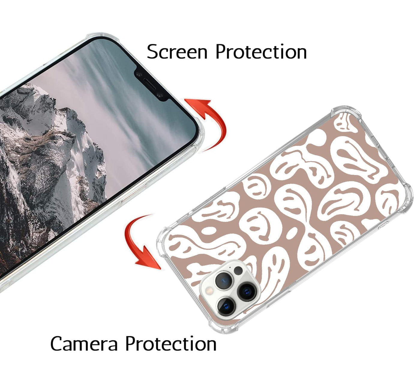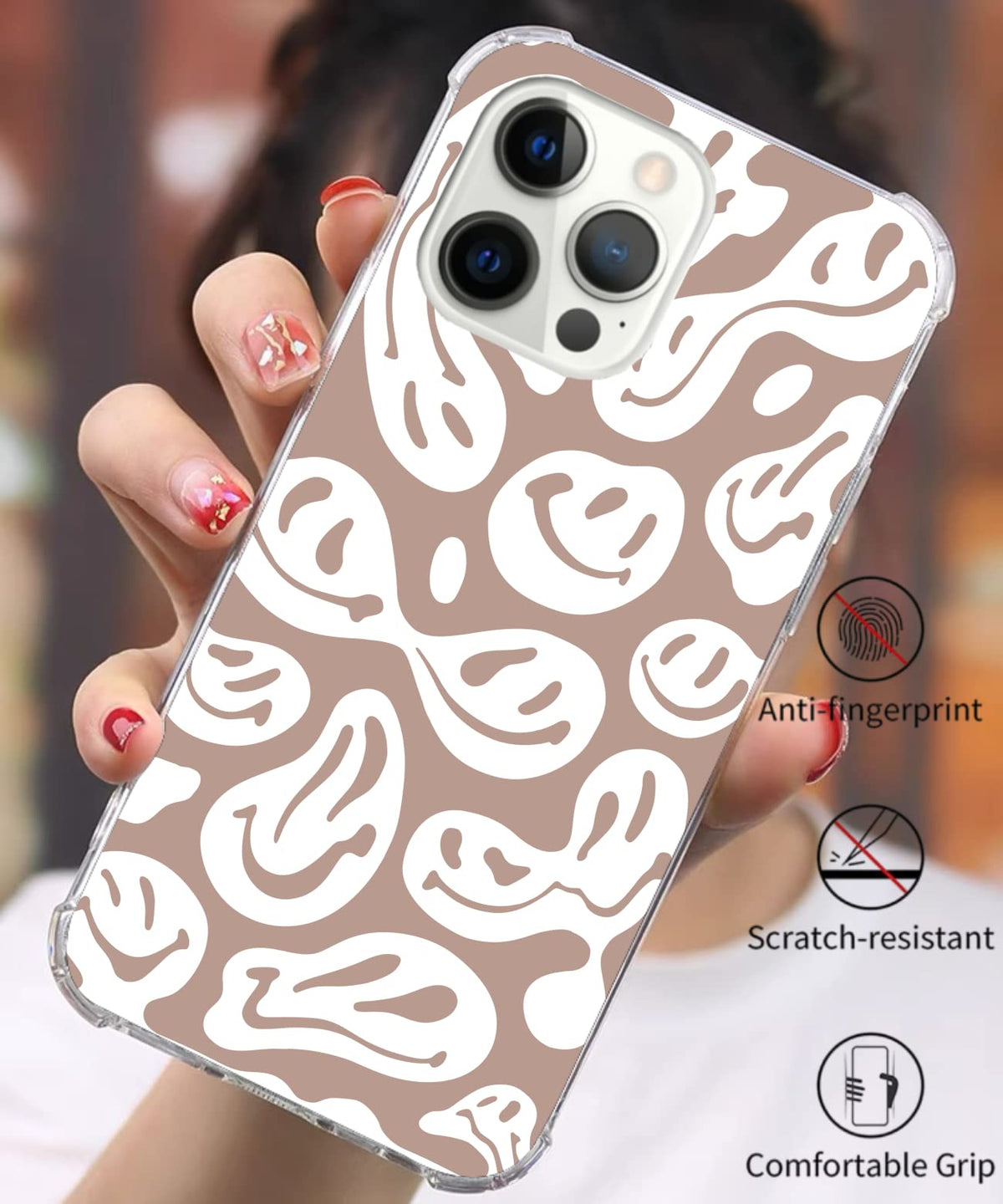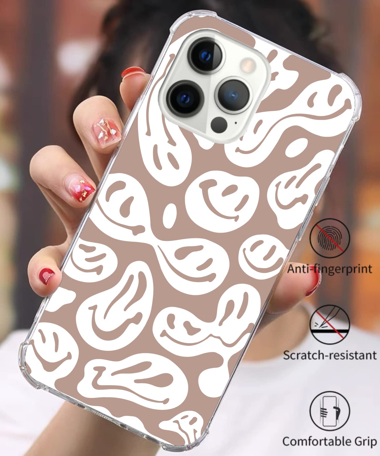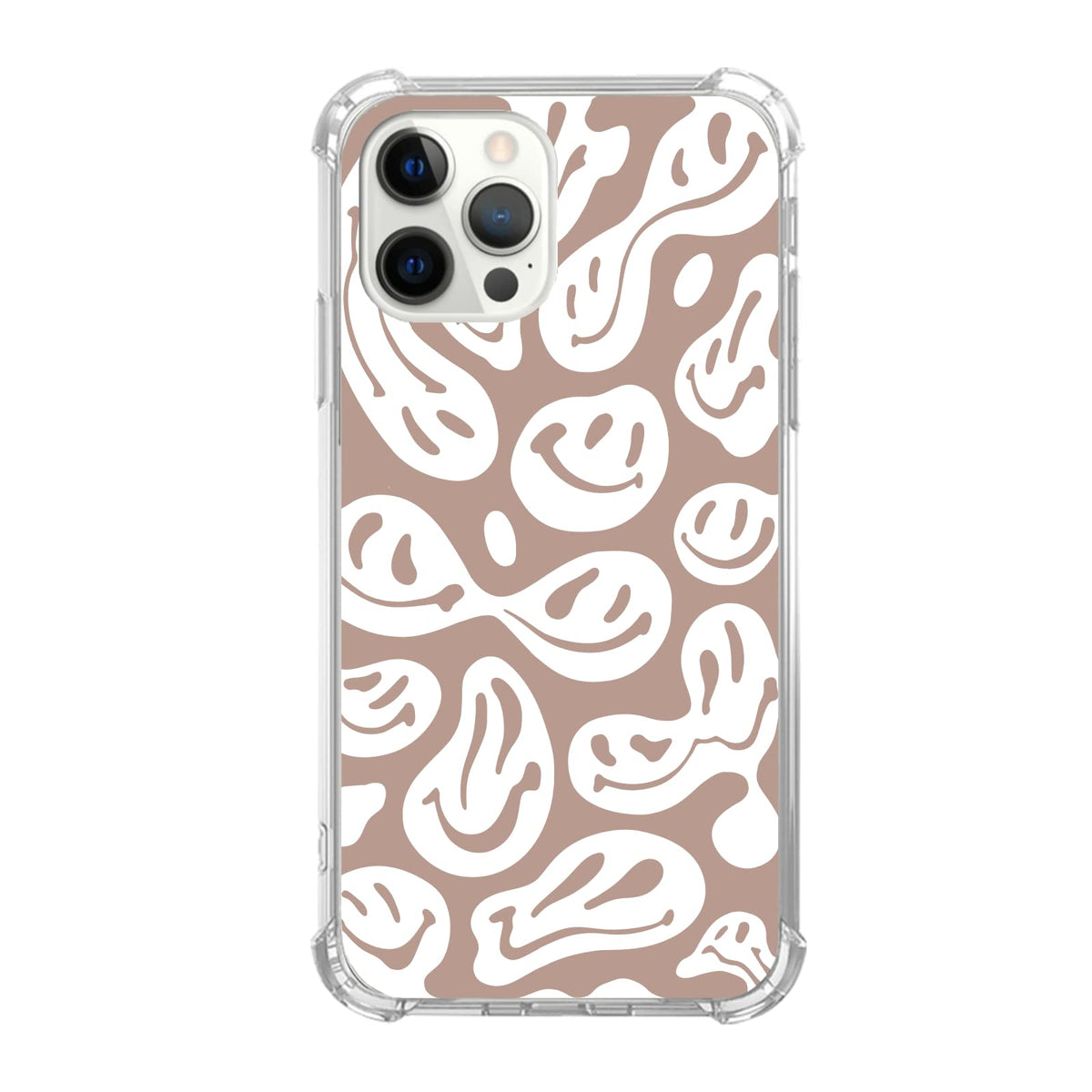 Brown White Trippy Smiley Face Phone Case For Iphone 12/ Iphone 12 Pro, Cute Funny Melted Face Beige Case For Girls Women Boys M