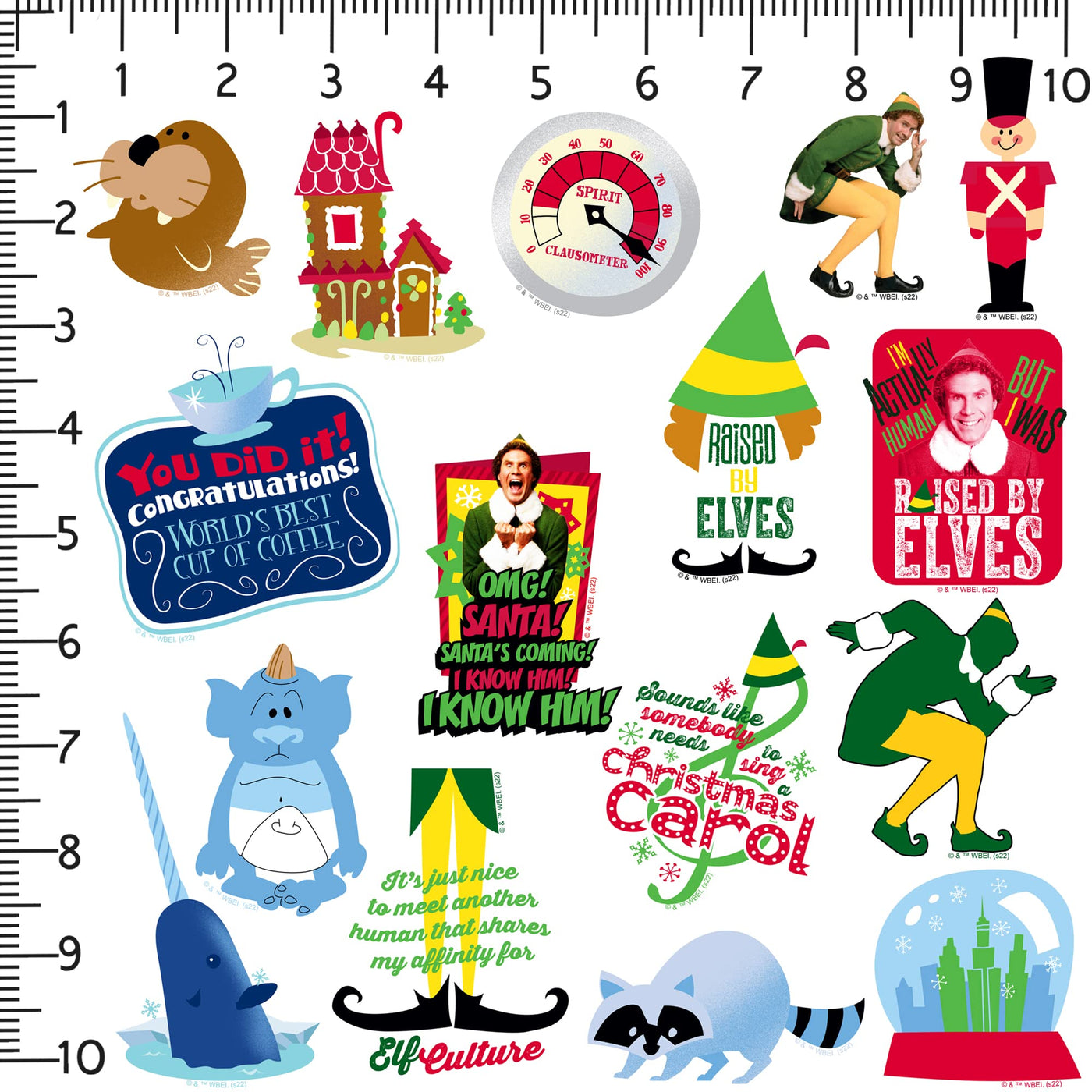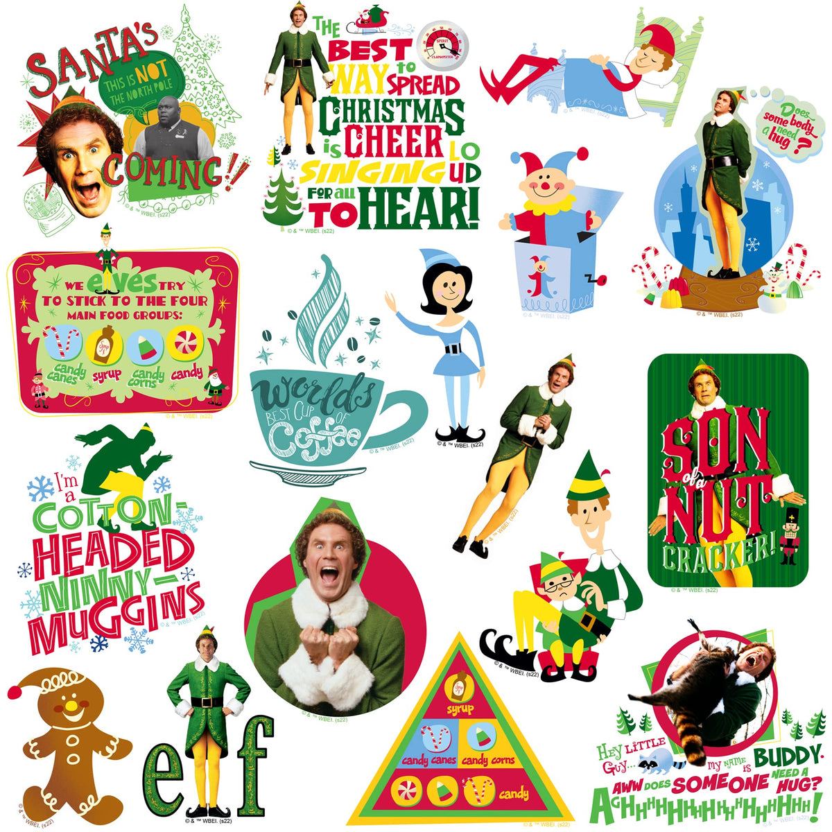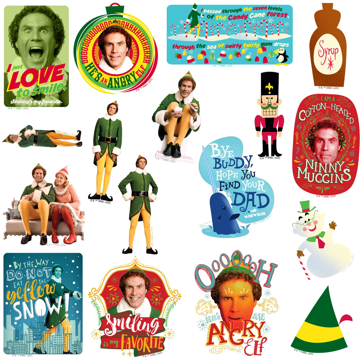 Buddy The Elf Stickers Vinyl Large Deluxe Sticker Variety Pack Laptop, Water Bottle, Scrapbooking, Tablet, Skateboard, Indoor/