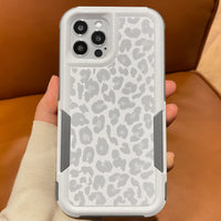 Burmcey For Iphone 12 Case & Iphone 12 Pro Case White Leopard Light Gray, Cheetah Print Heavy Duty Tough Rugged Full Body Protec